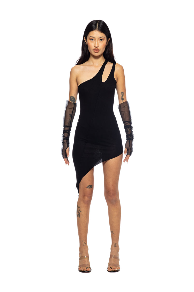 OPEN SEAM ARM WARMERS IN BLACK MESH