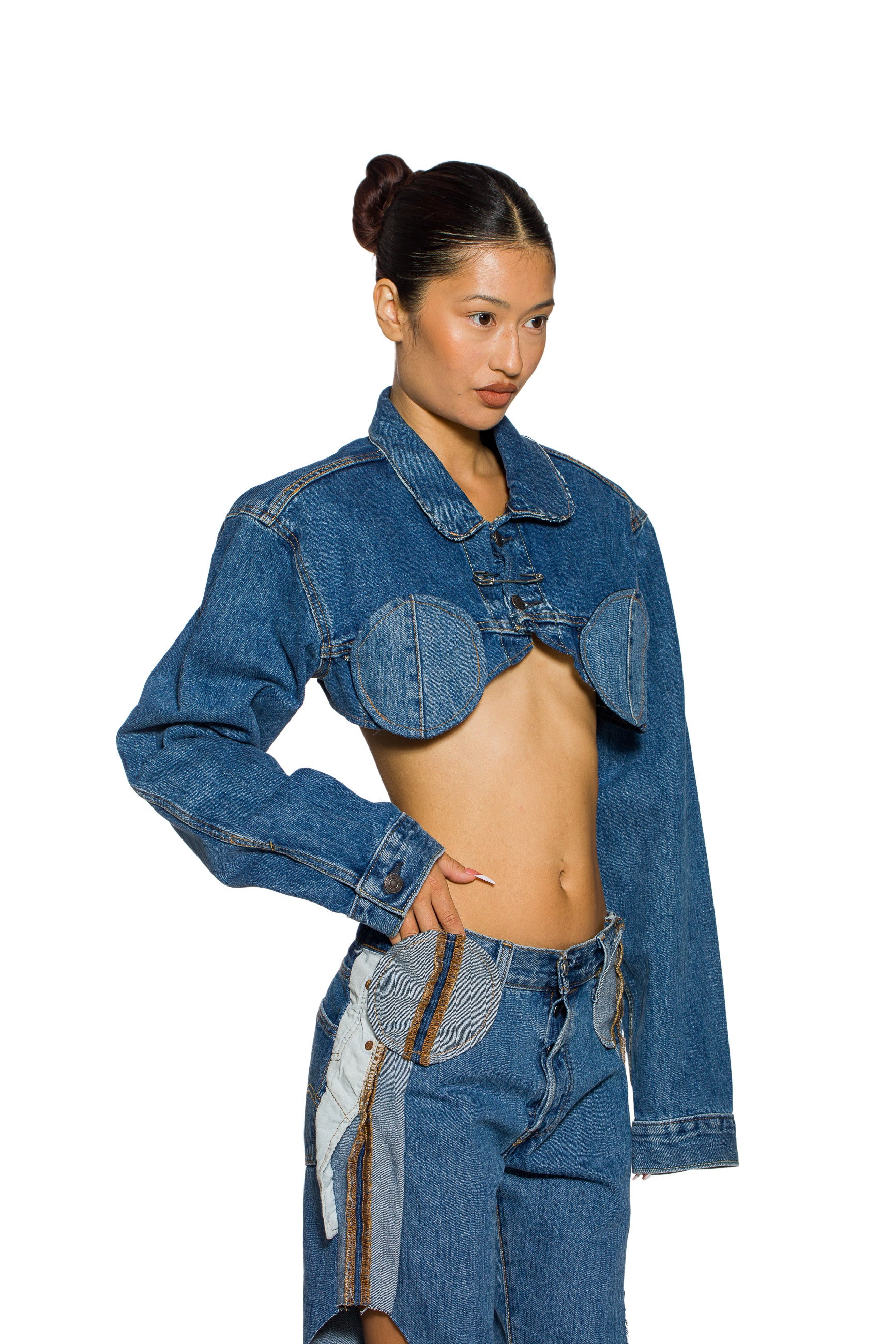Reworked with upcycled Levi’s® denim, with the Sami Miro Vintage signature exposed outer seams.