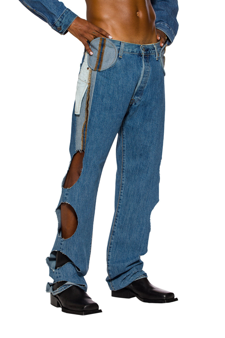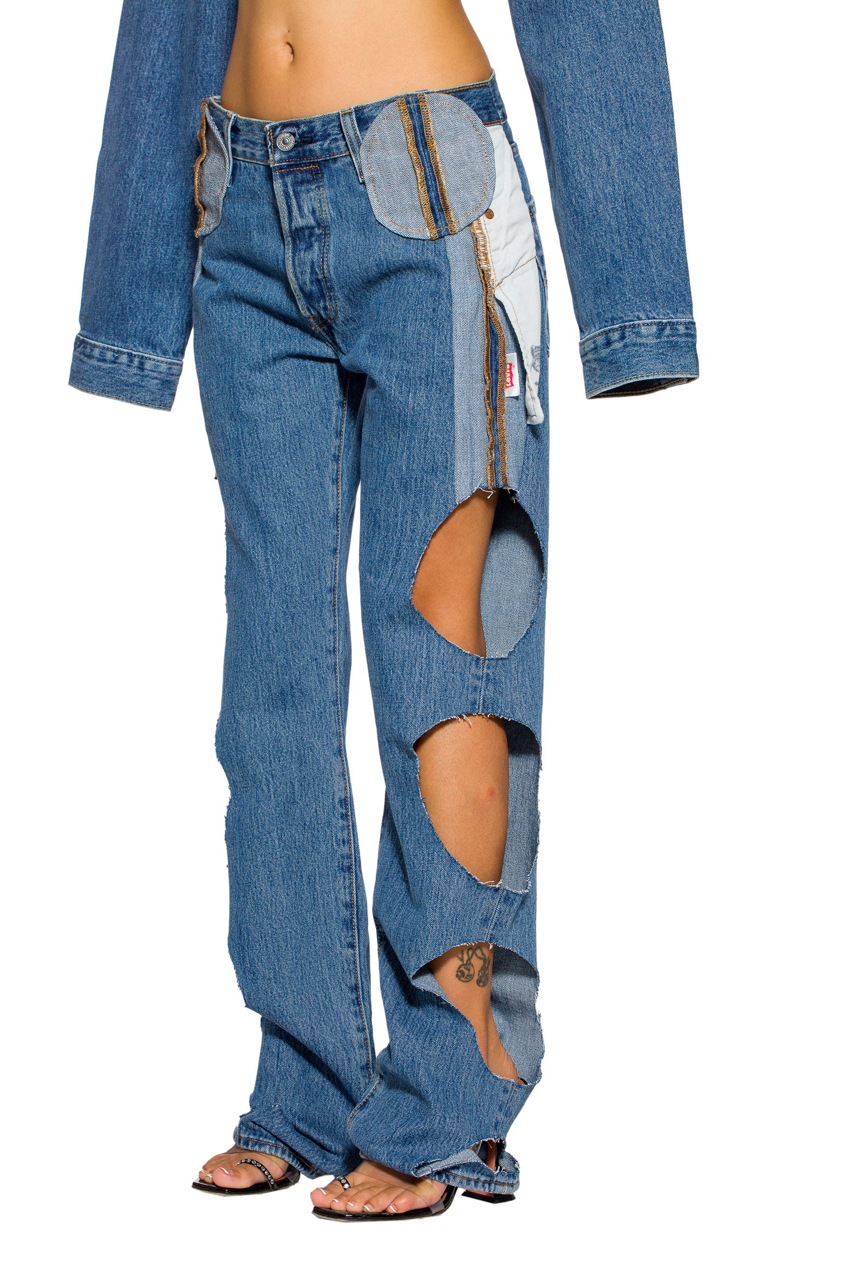 SMV X LEVI'S UPCYCLED PORTERHOUSE CIRCLE CUTOUT JEANS
