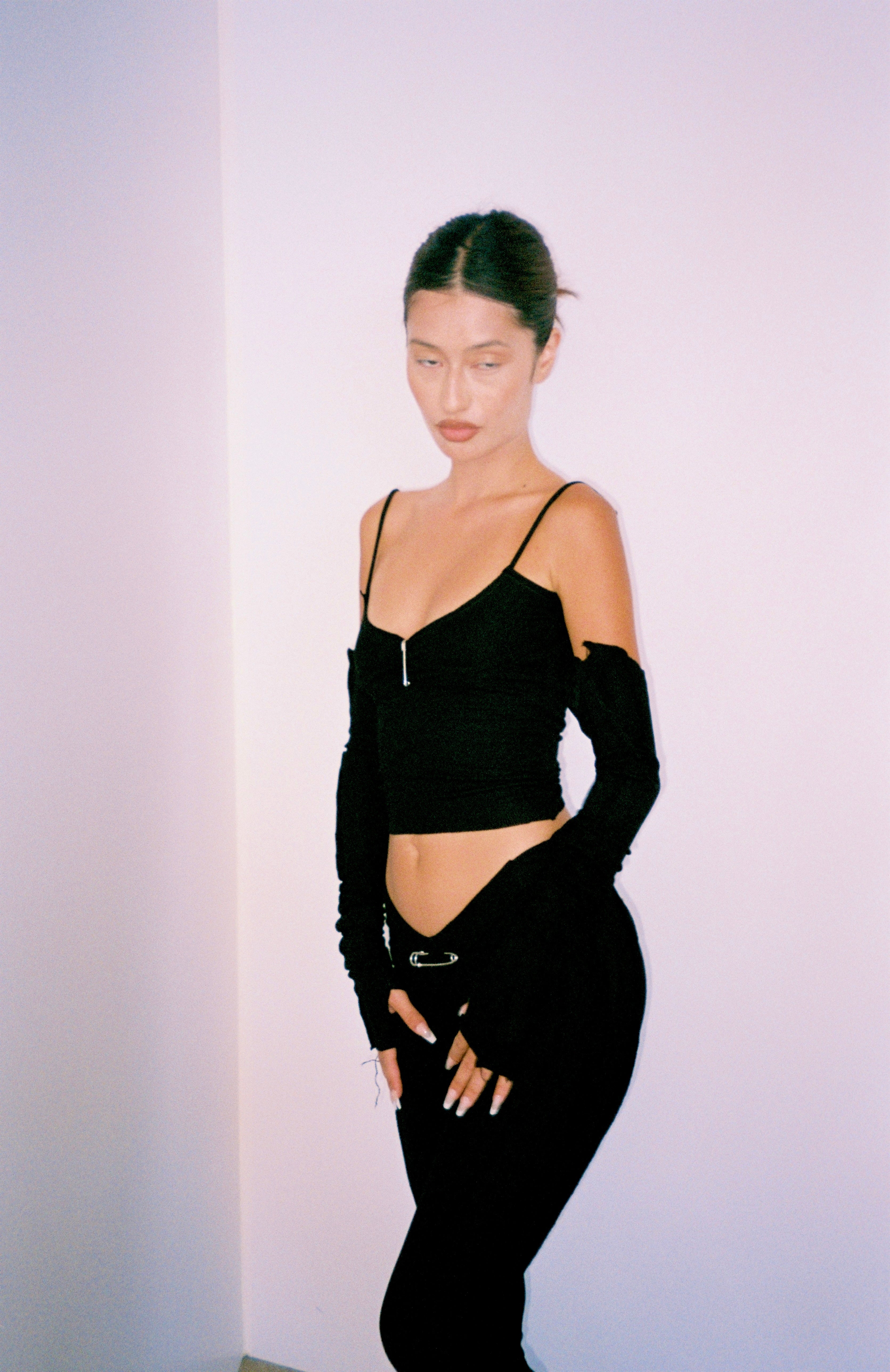 Pair it with our Open Seam Arm Warmers and any of our bottoms in black rib.