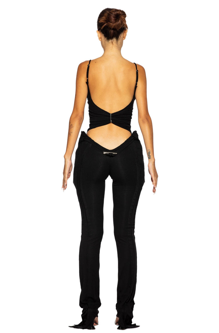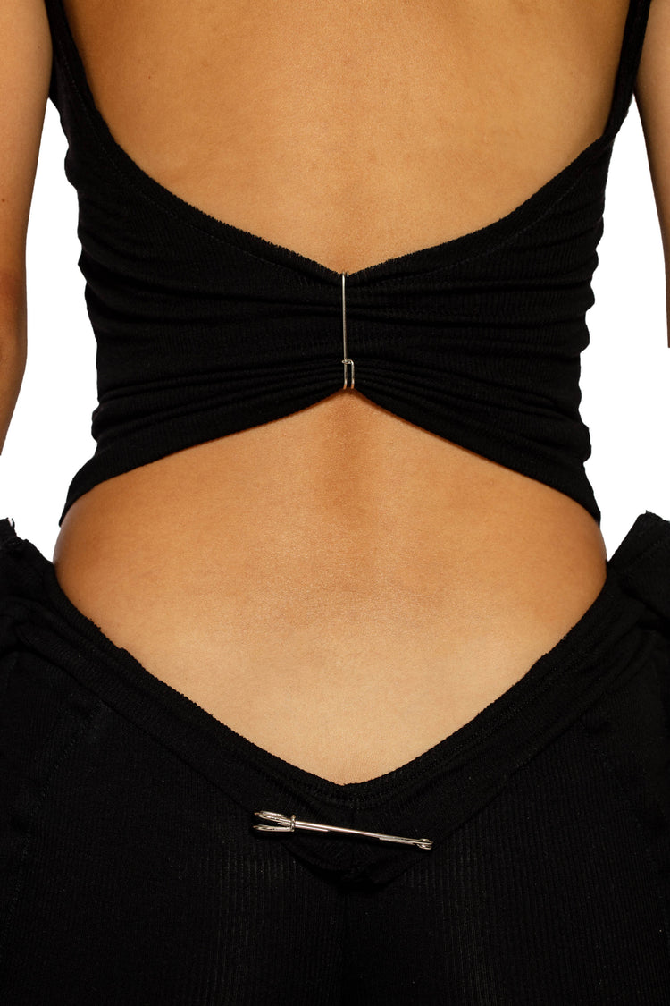 LOW BACK DOUBLE LAYER TANK IN BLACK RIB
