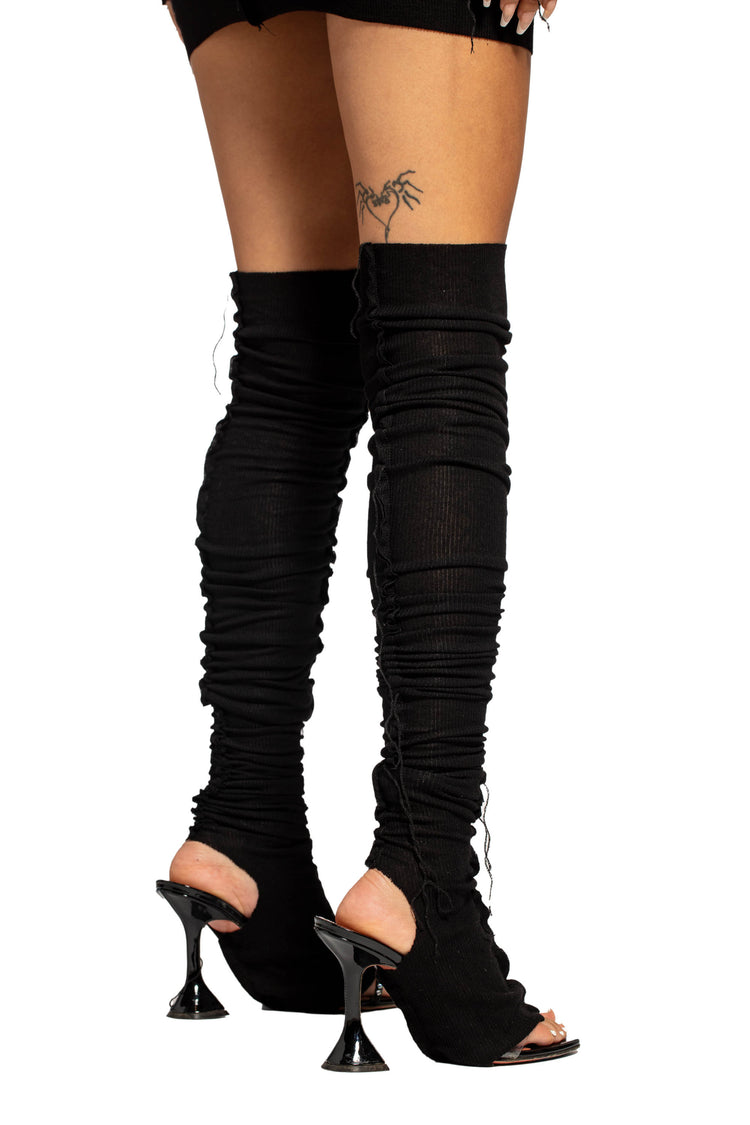 OPEN SEAM LEG WARMER SOCKS IN BLACK RIB