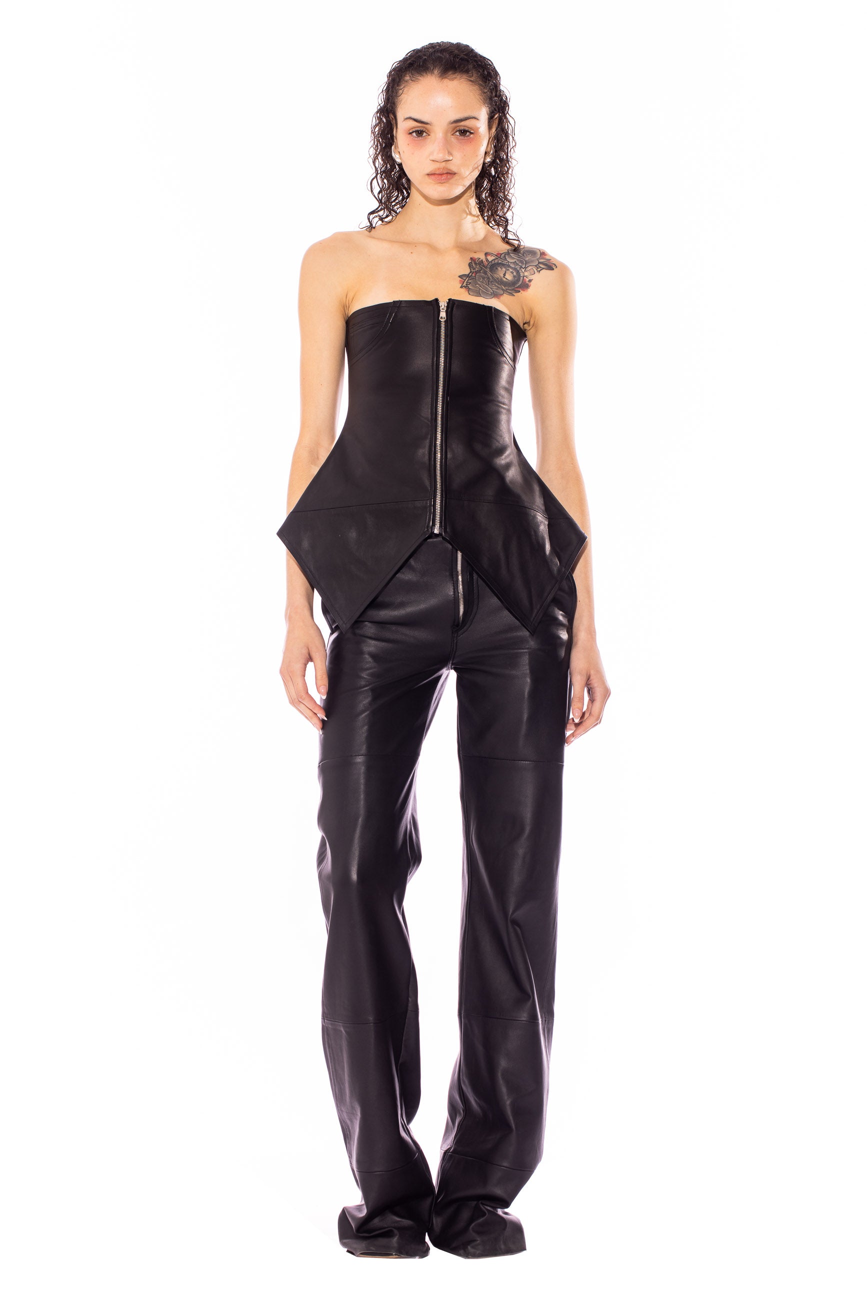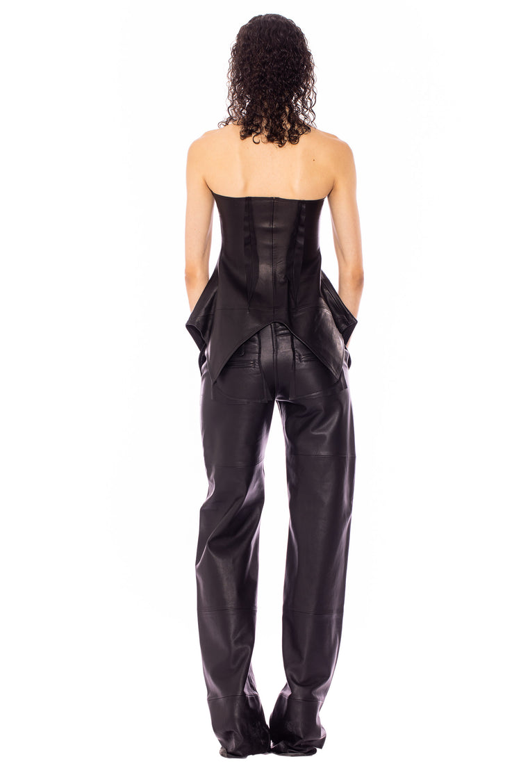 CURVE STRAPLESS TOP IN BLACK LEATHER
