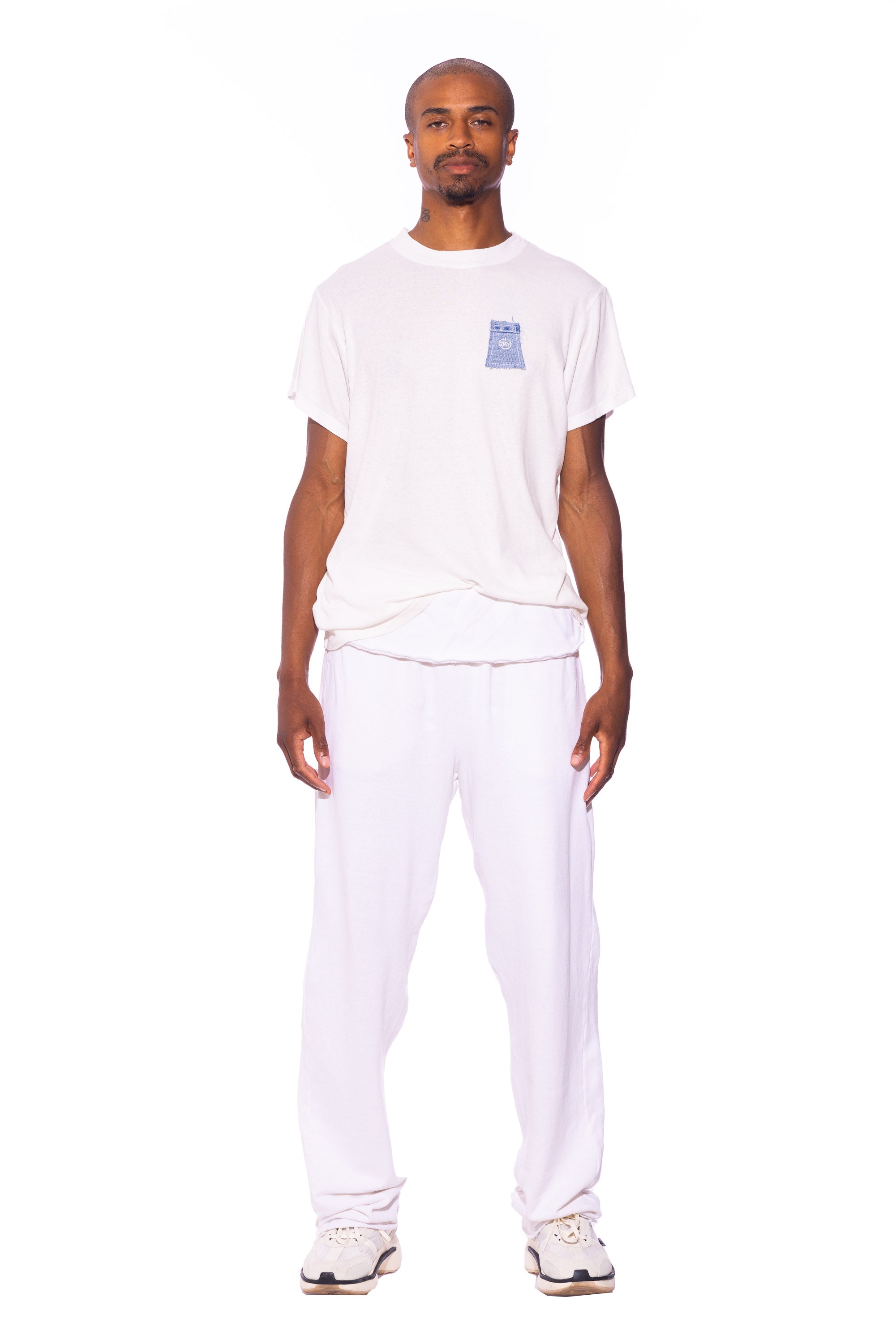 FOLD OVER SWEATPANTS IN WHITE TERRY