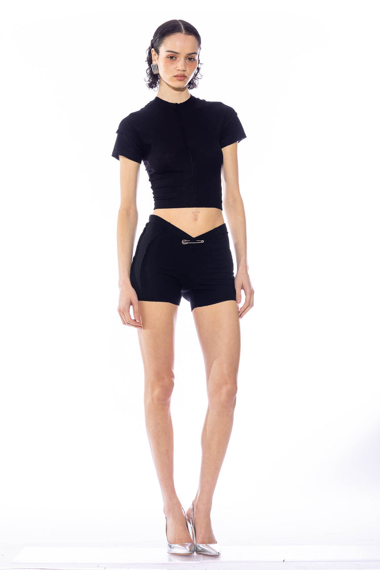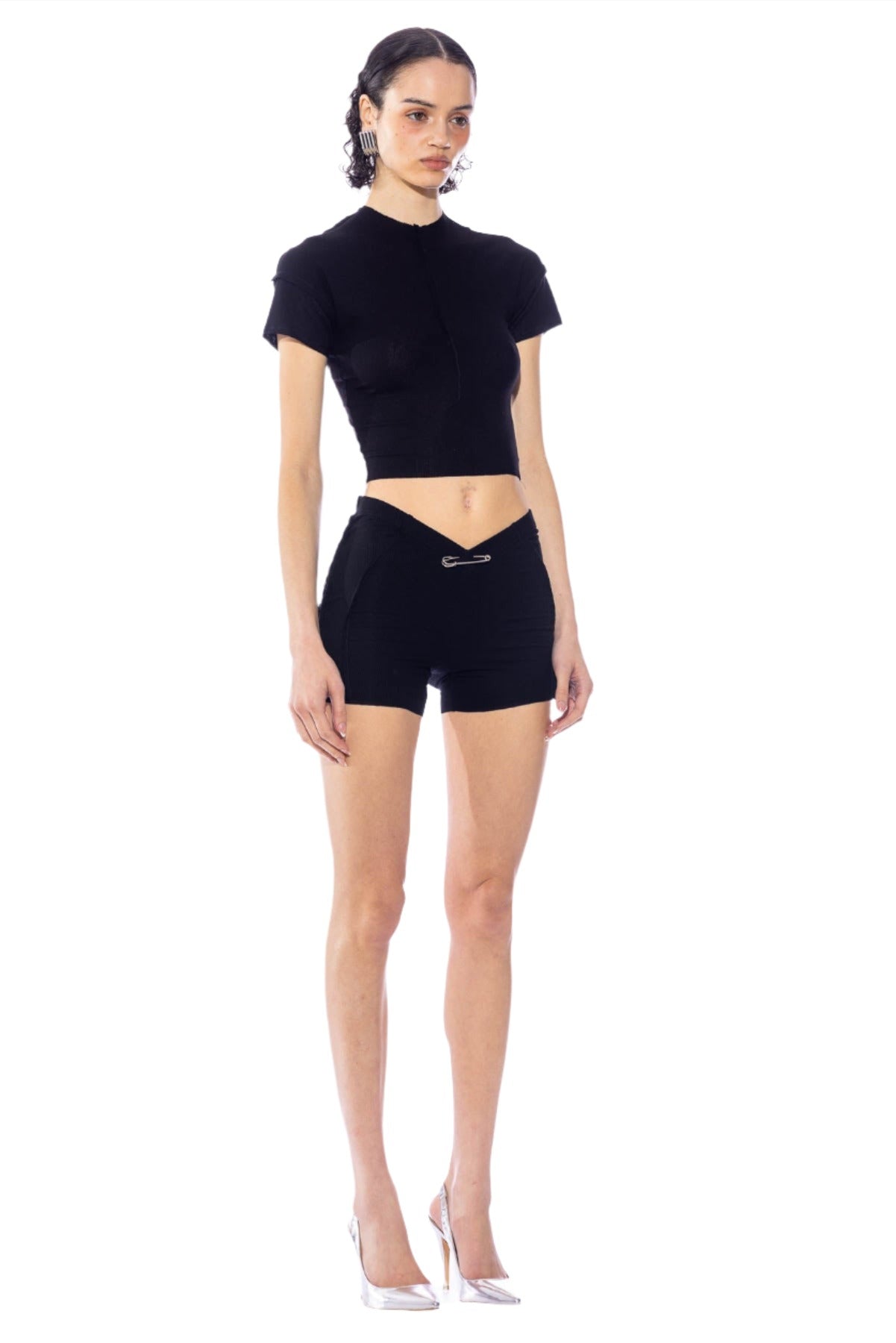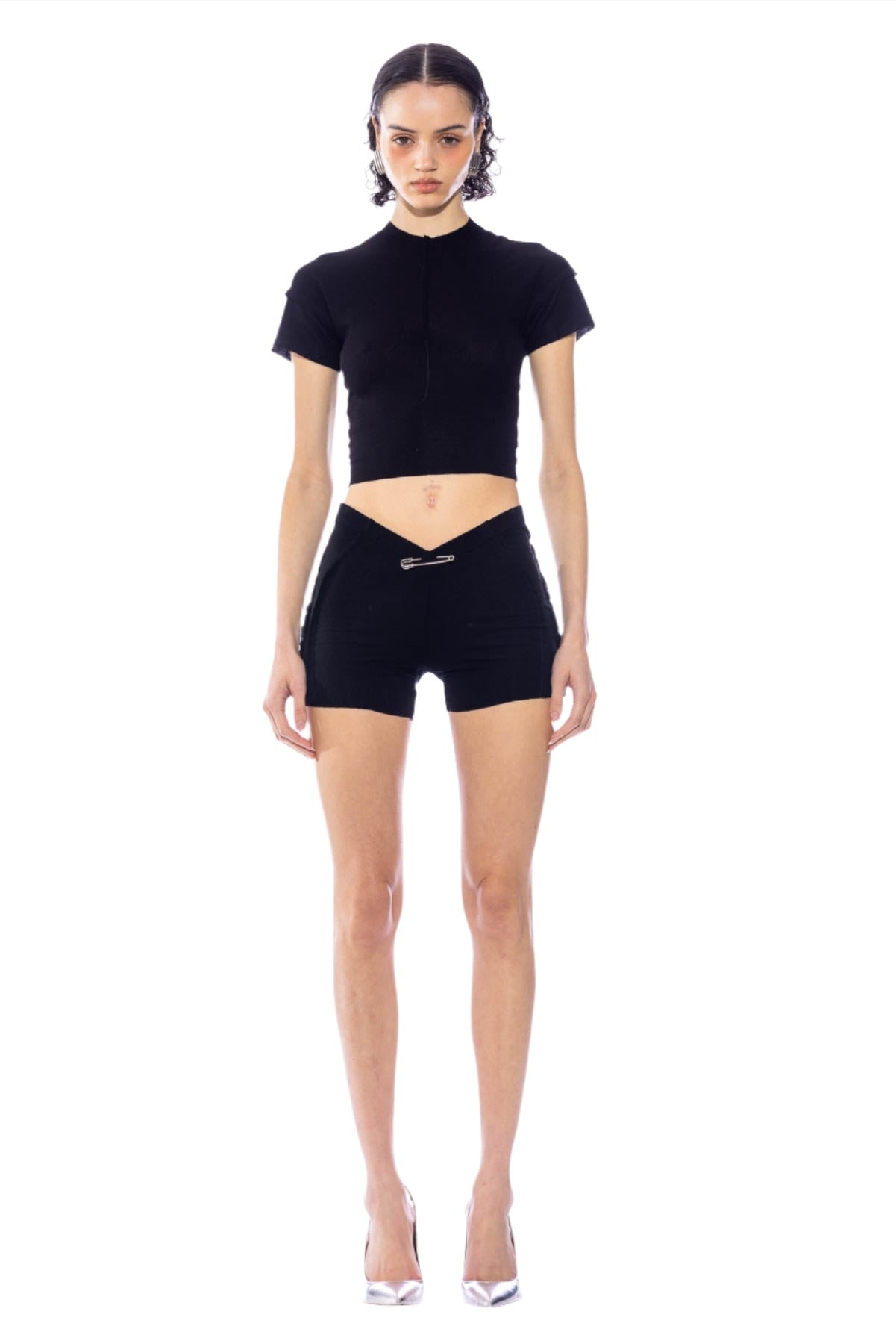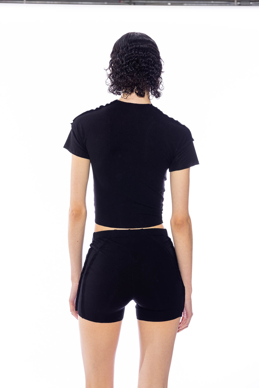 OPEN SEAM MINI SHORT IN BLACK RIB
