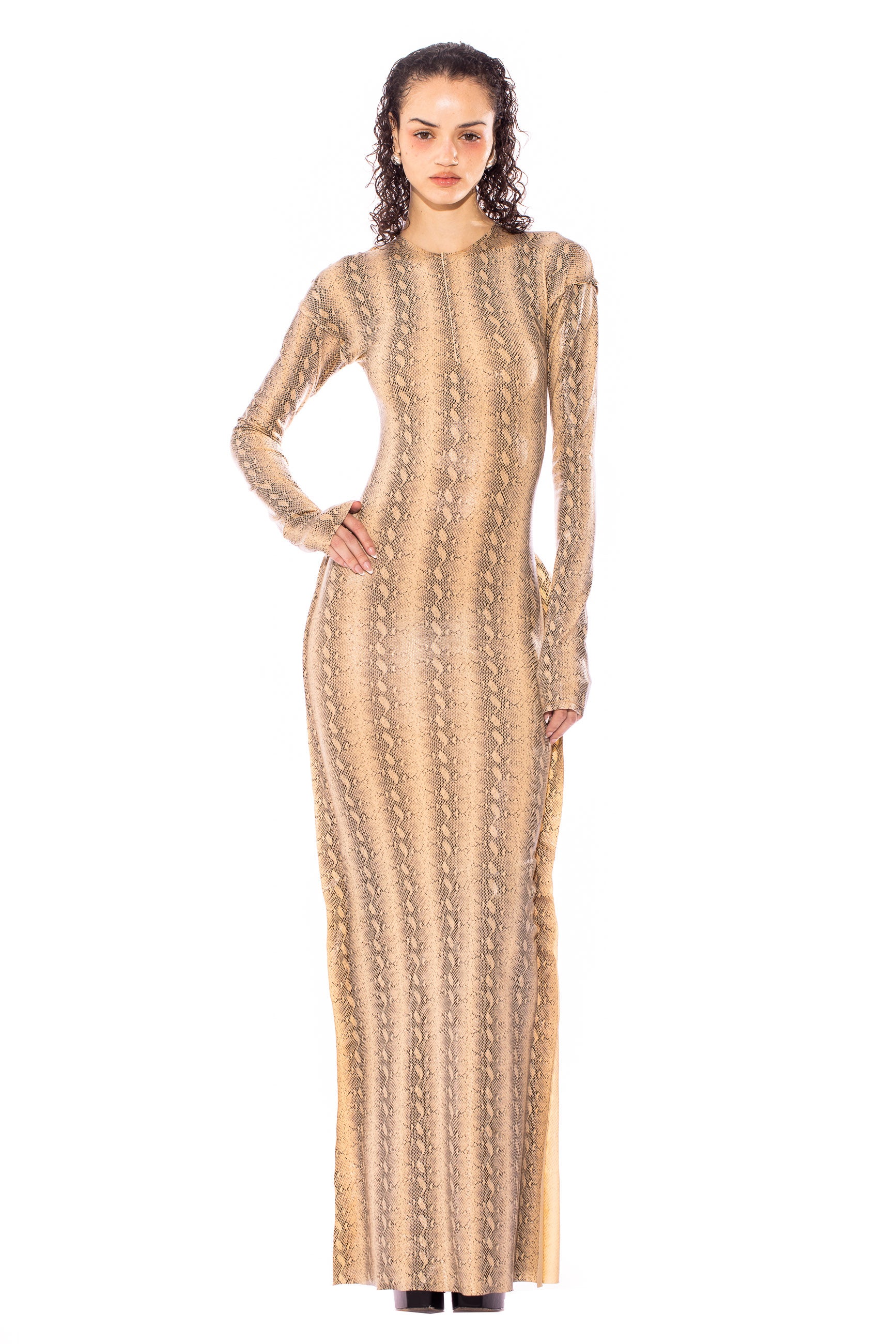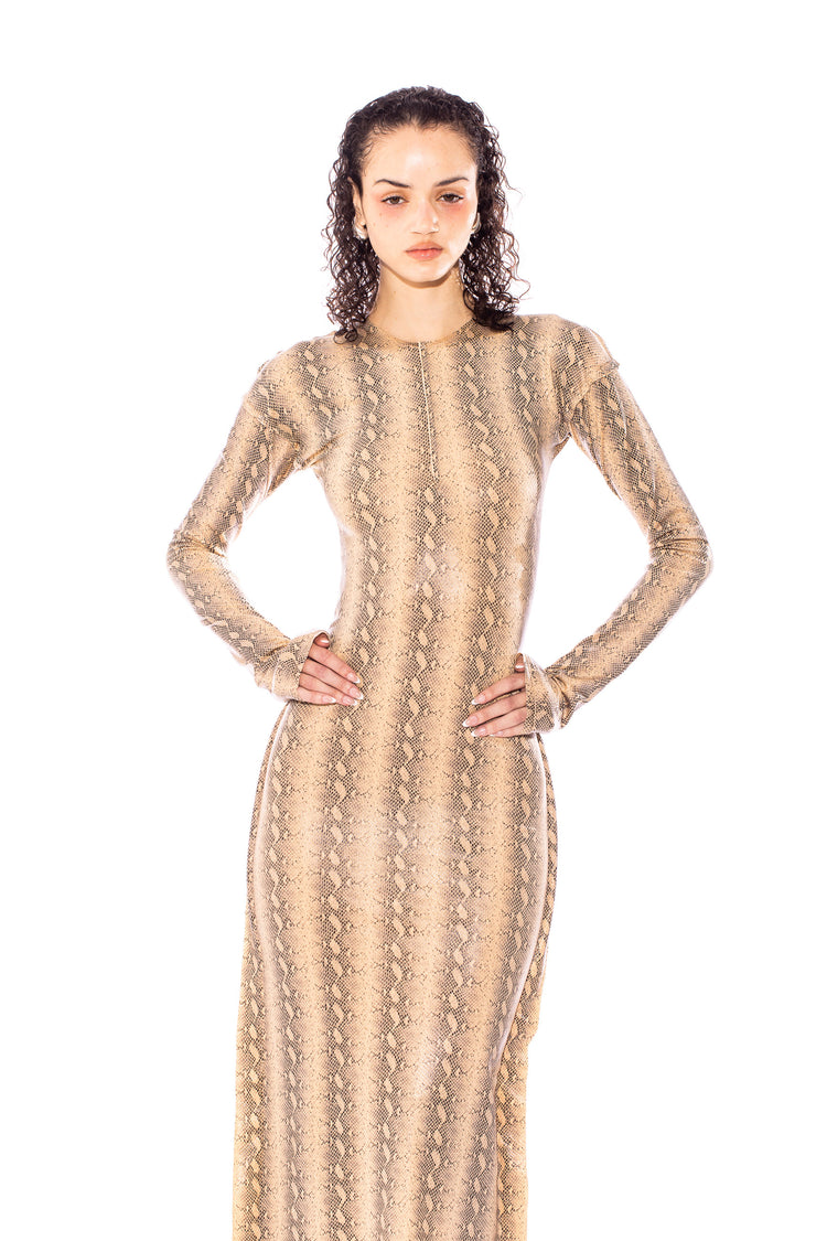 OPEN SEAM MAXI DRESS IN SNAKE
