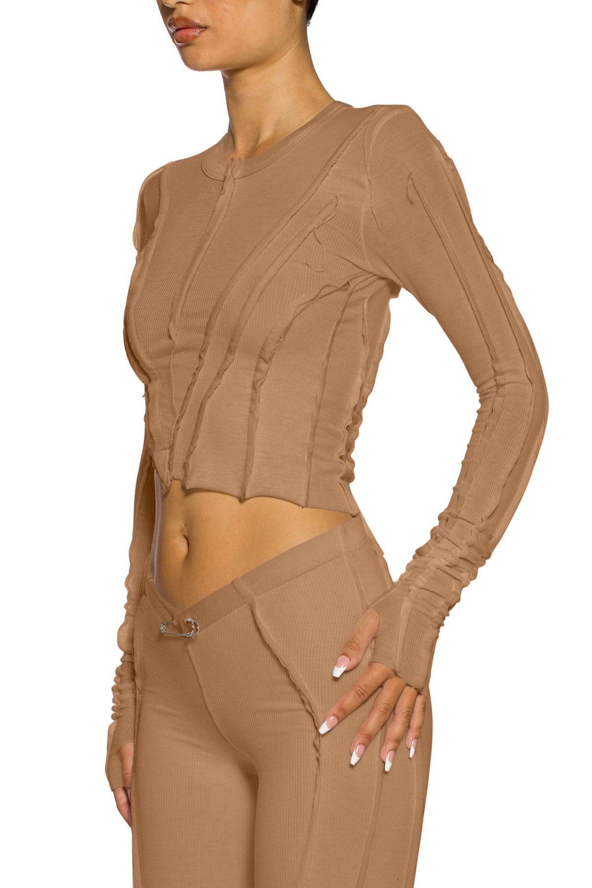 ASYMMETRIC LONG SLEEVE TEE IN CLAY RIB