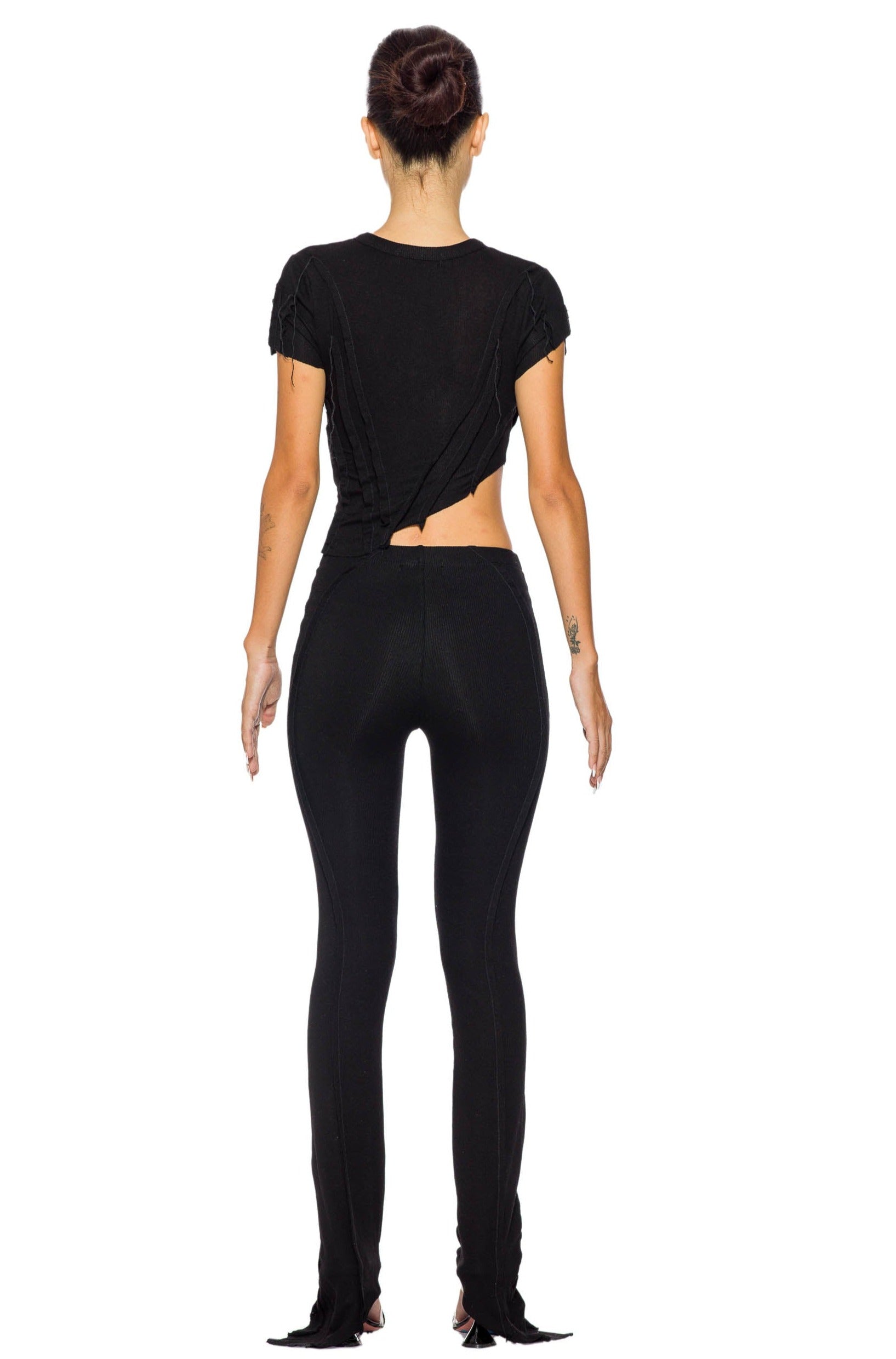 ASYMMETRIC TEE IN BLACK RIB
