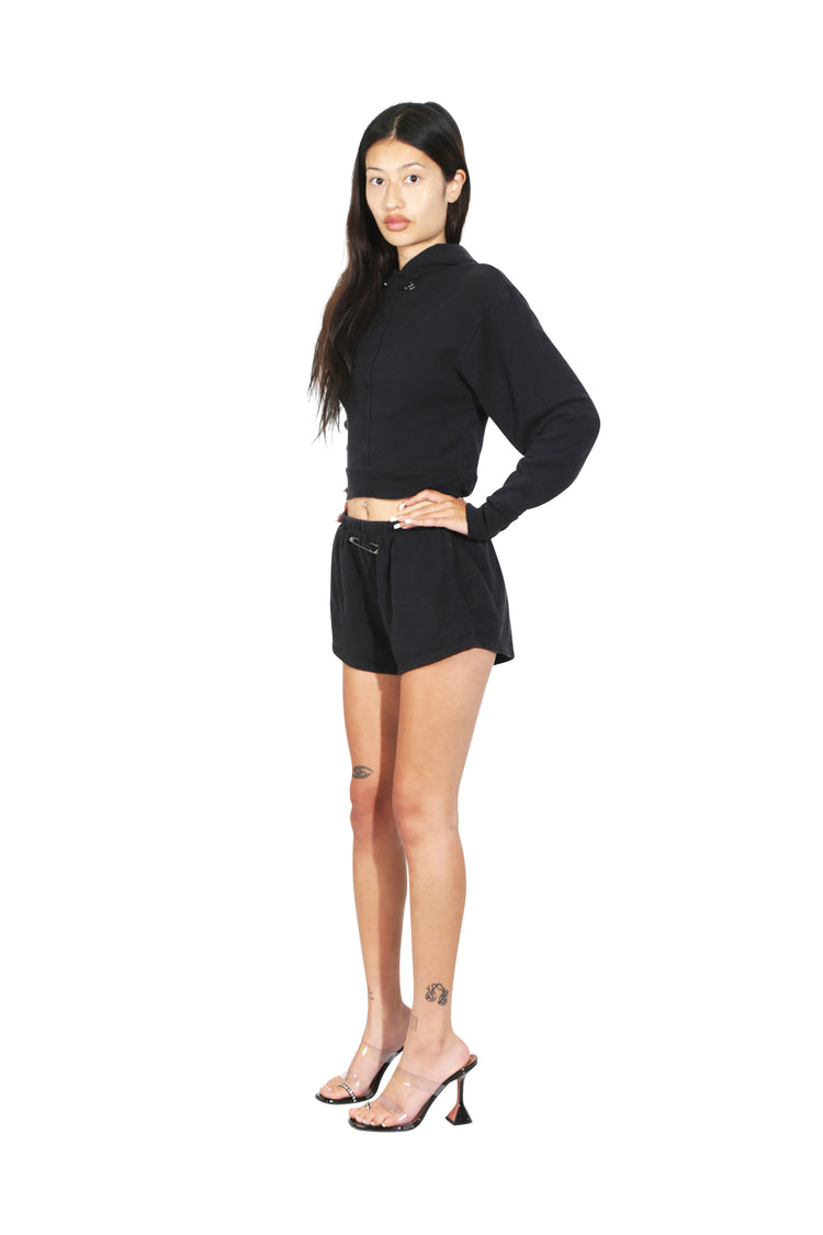 MINI SAFETY PIN HOODIE IN BLACK TERRY