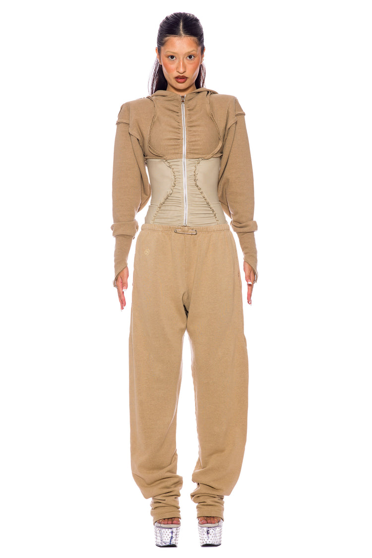 OPEN SEAM ZIP HOODIE IN TAUPE