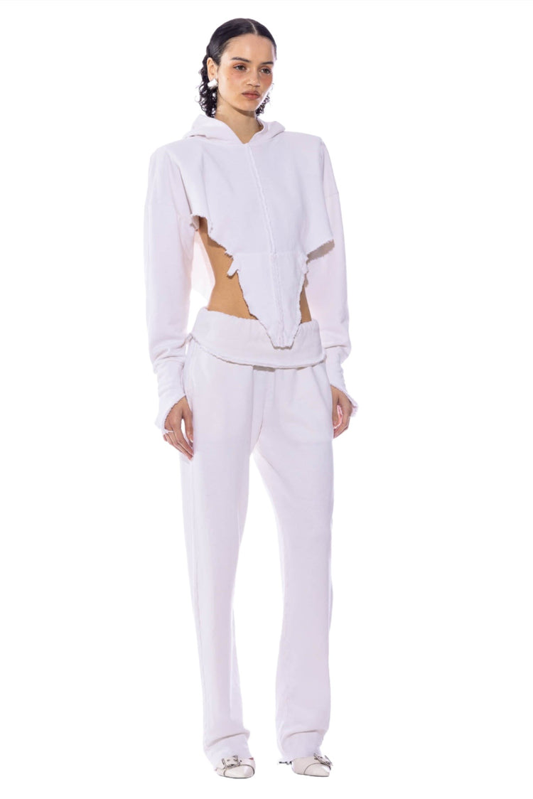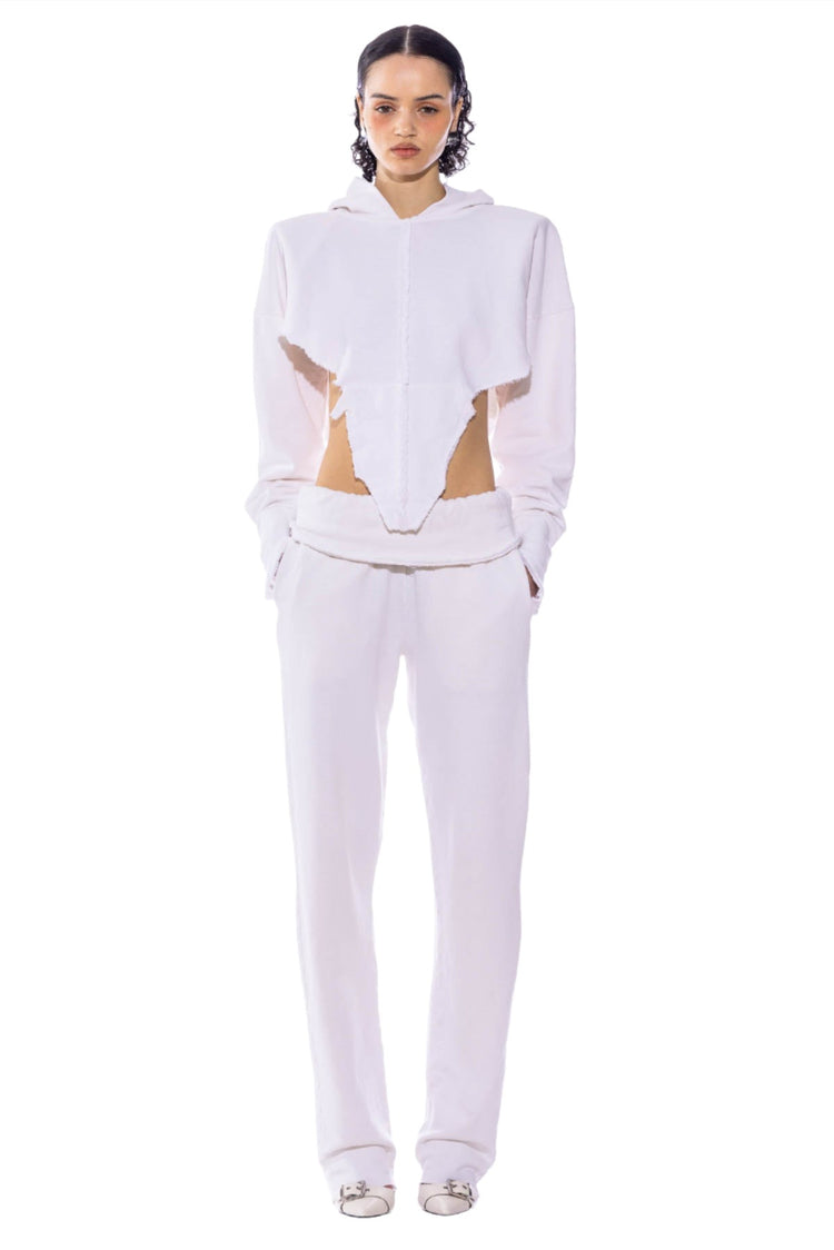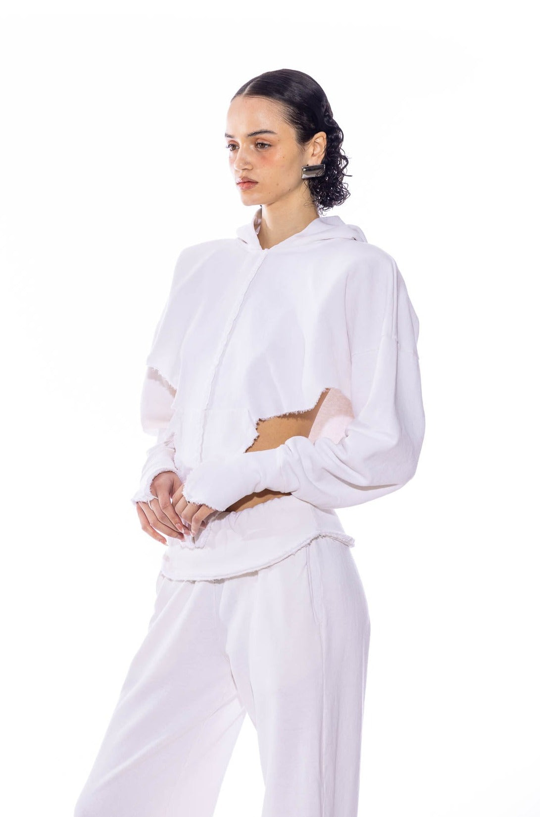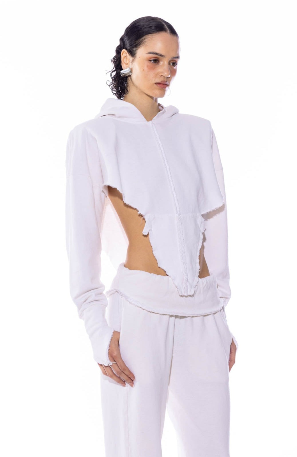 Victorian cuffs, finger elastic, hood and removable shoulder pads.