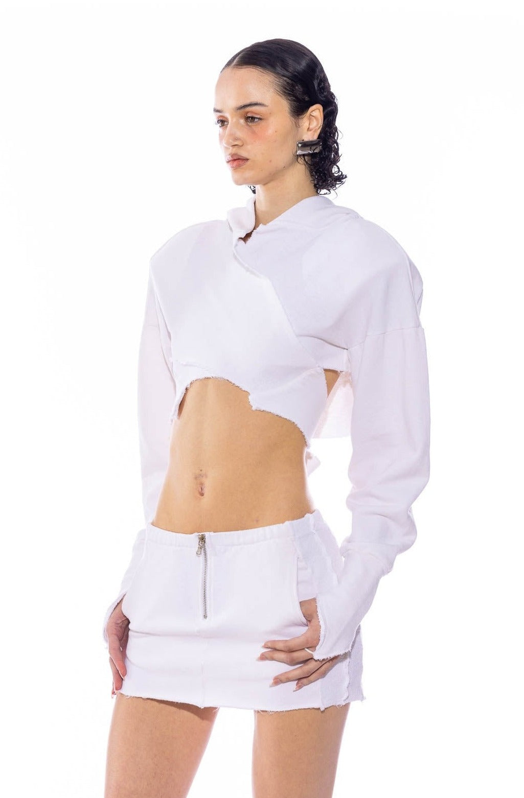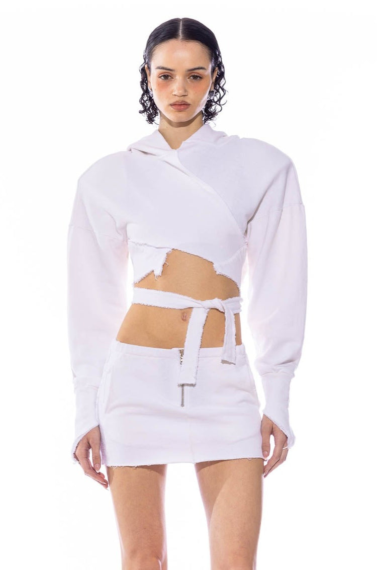 WRAP HOODIE IN WHITE TERRY