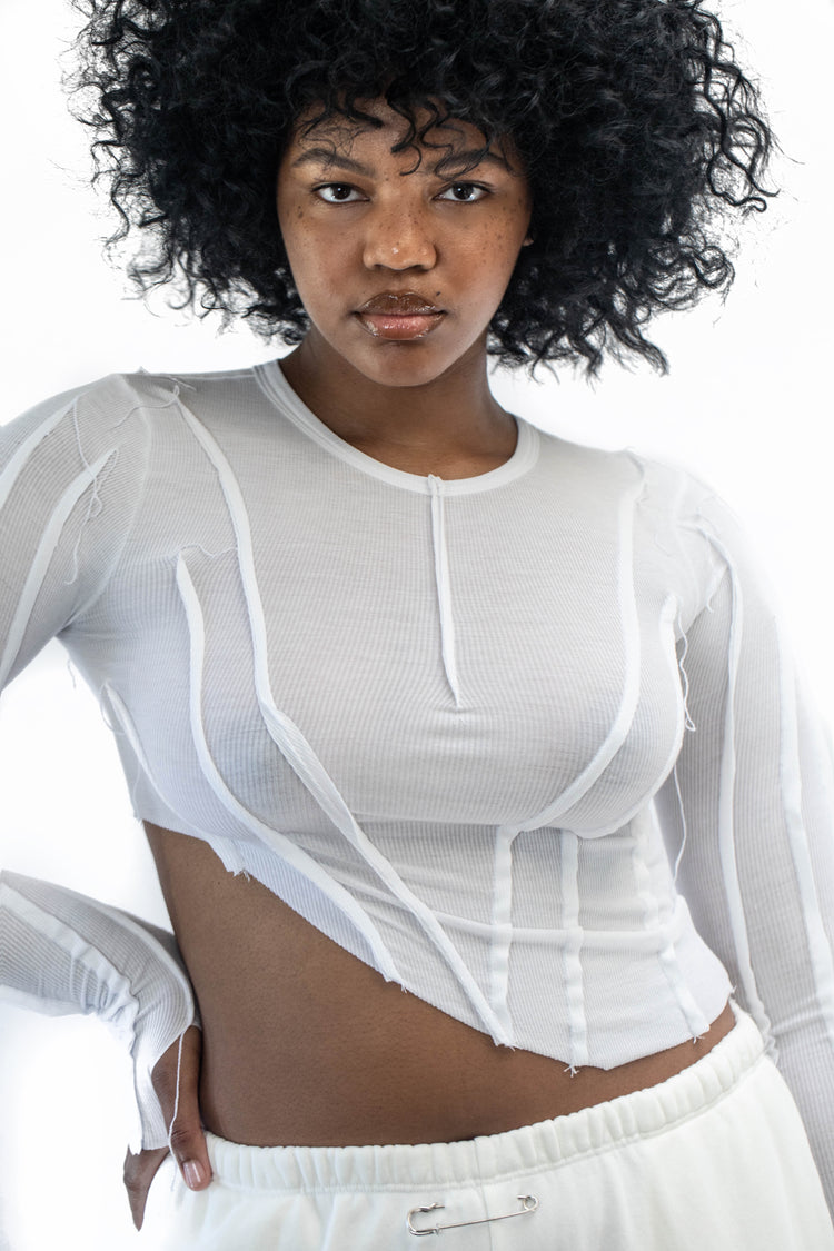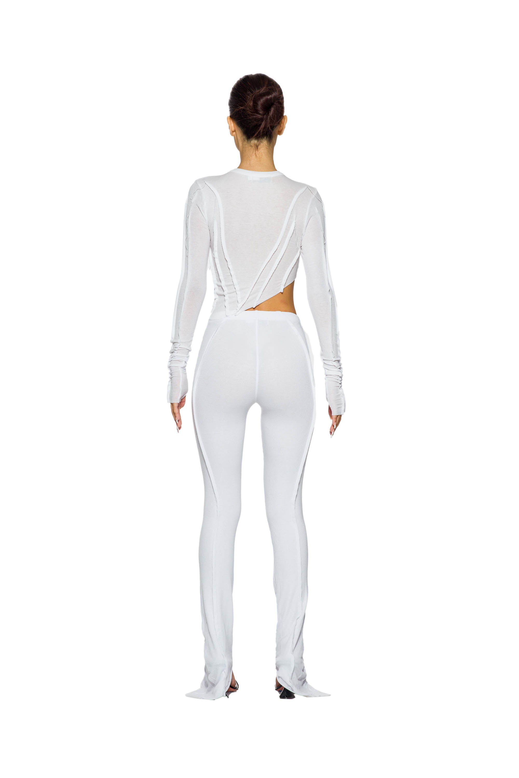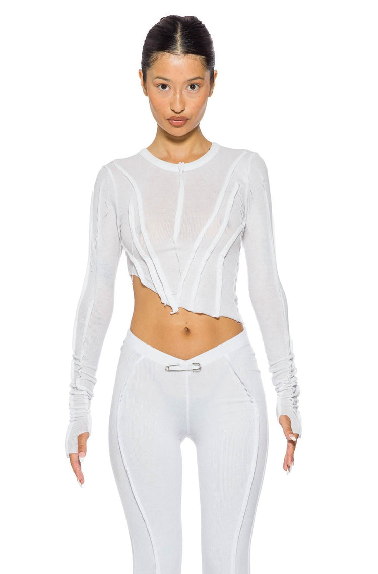 ASYMMETRIC LONG SLEEVE TEE IN WHITE RIB