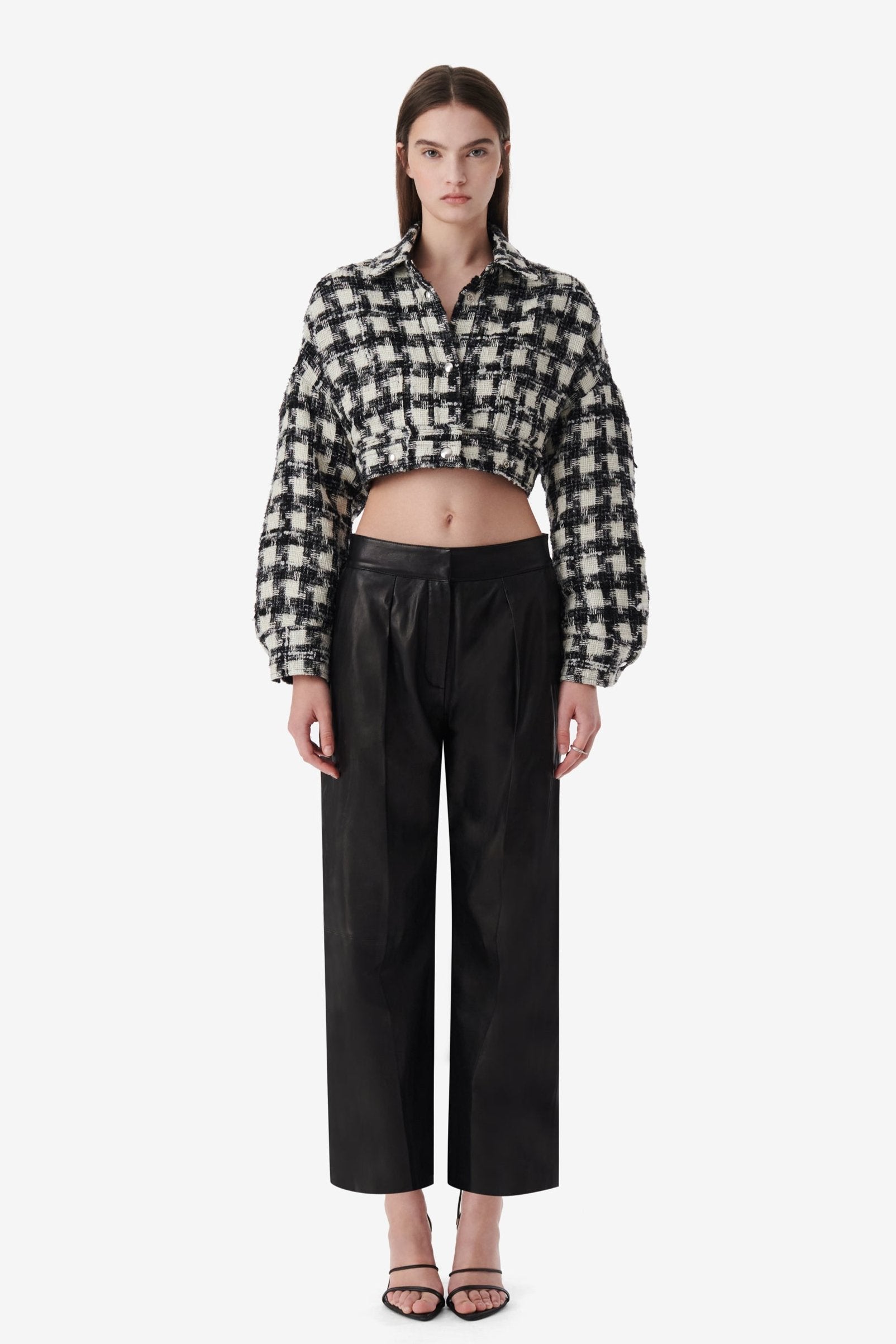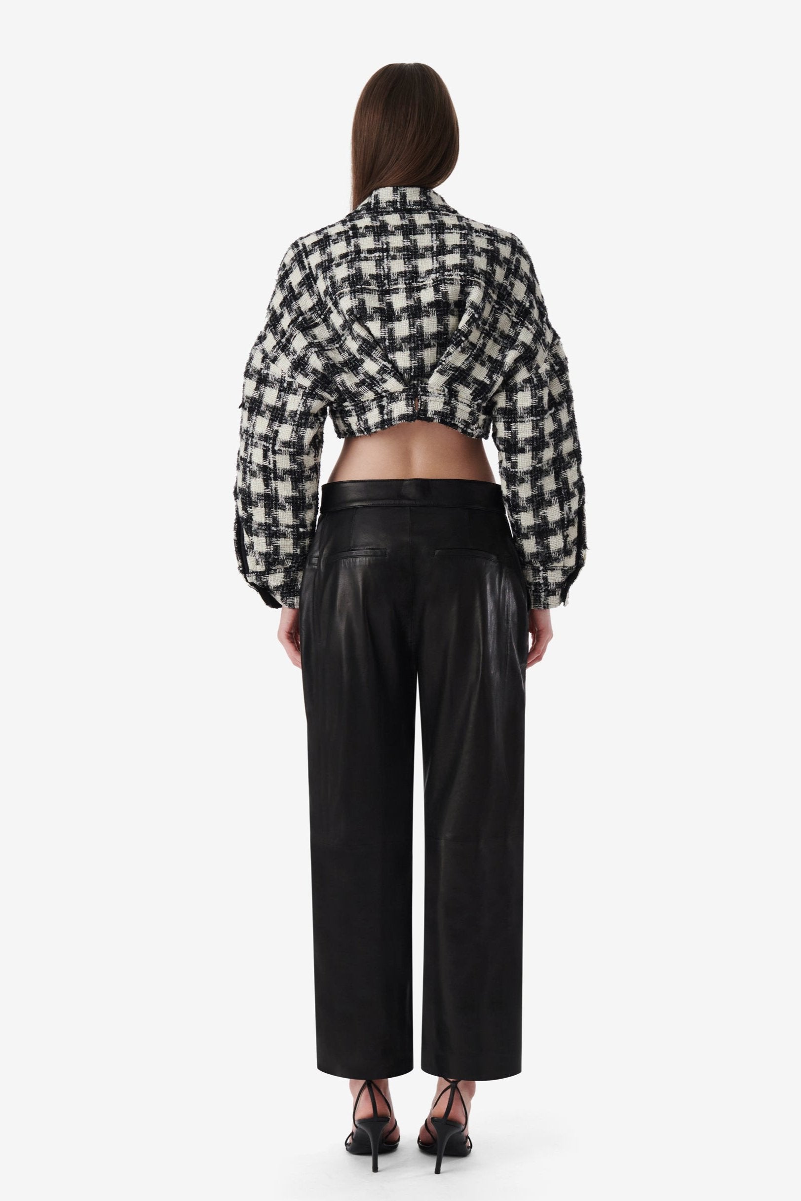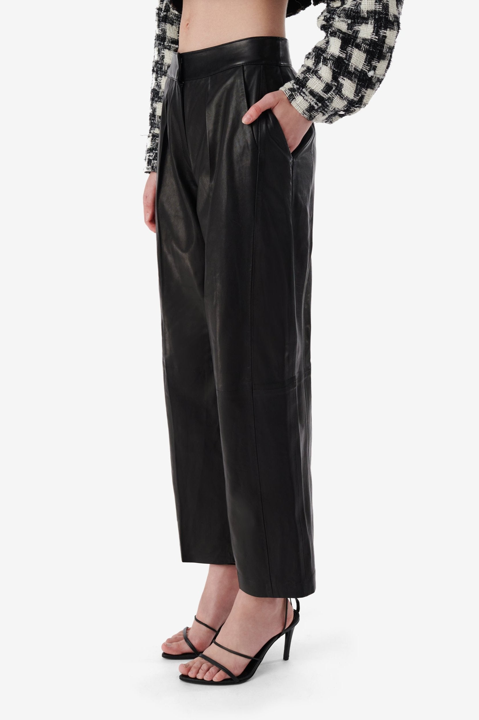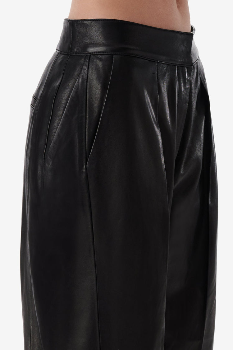 Repurposed from IRO's nappa leather pants: two pairs of leather pants are fused to create double pockets, additional pleats and a low-rise.