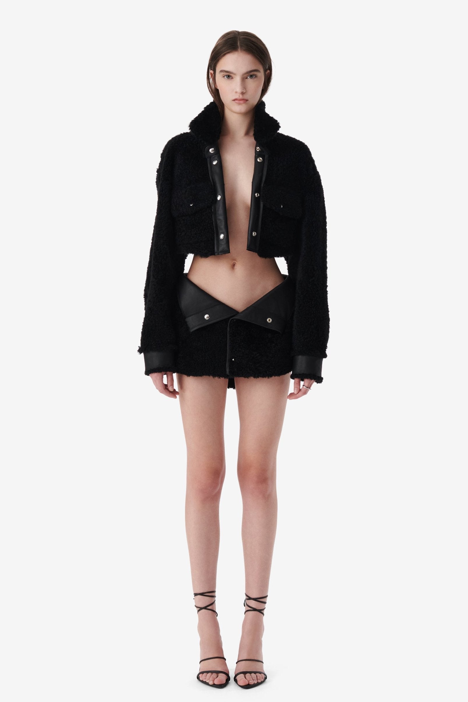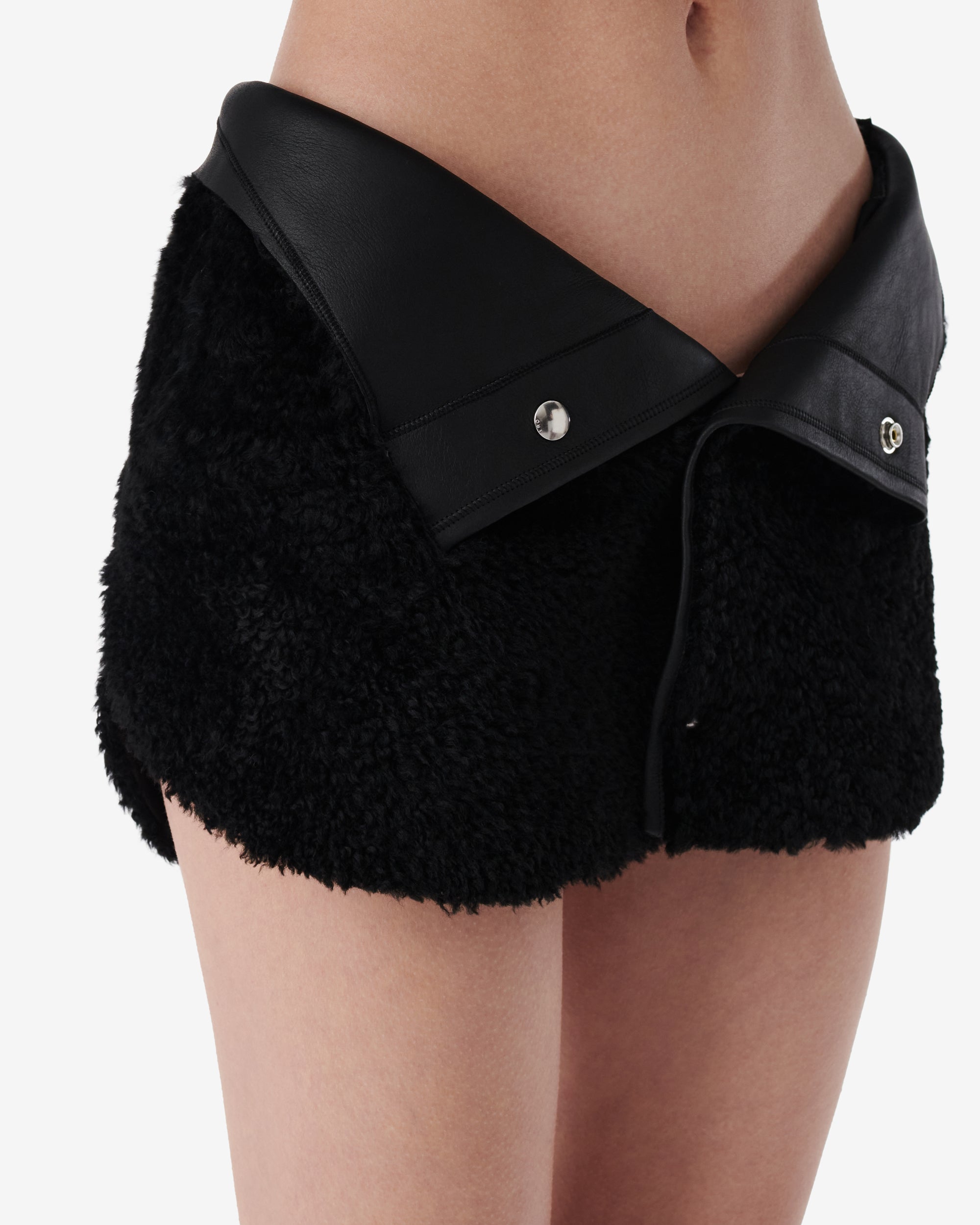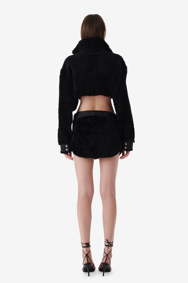 SMV X IRO BLACK SHEARLING LEATHER SKIRT