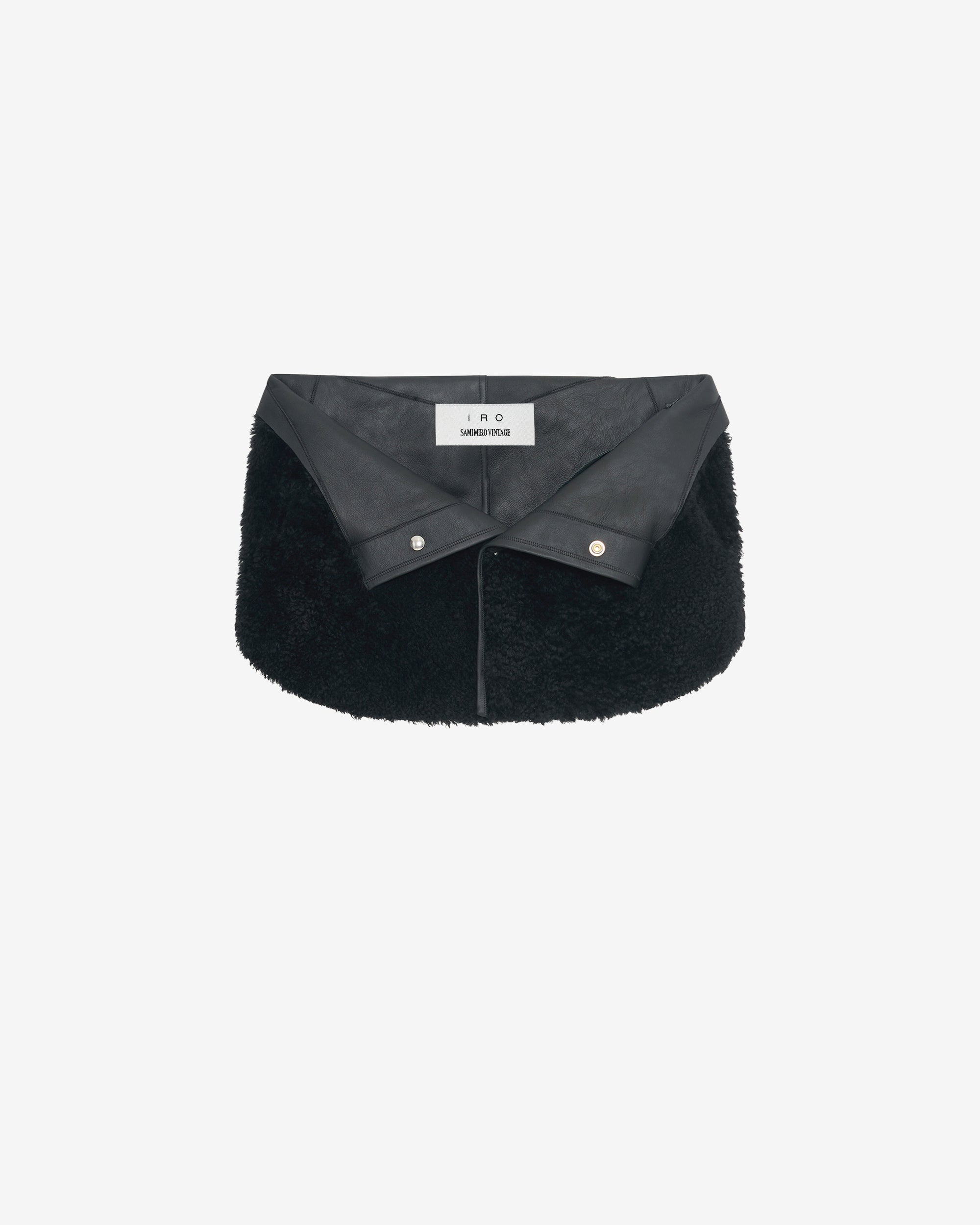Repurposed from the hem of IRO's men's shearling nappa lamb overshirt. Snap button closure.