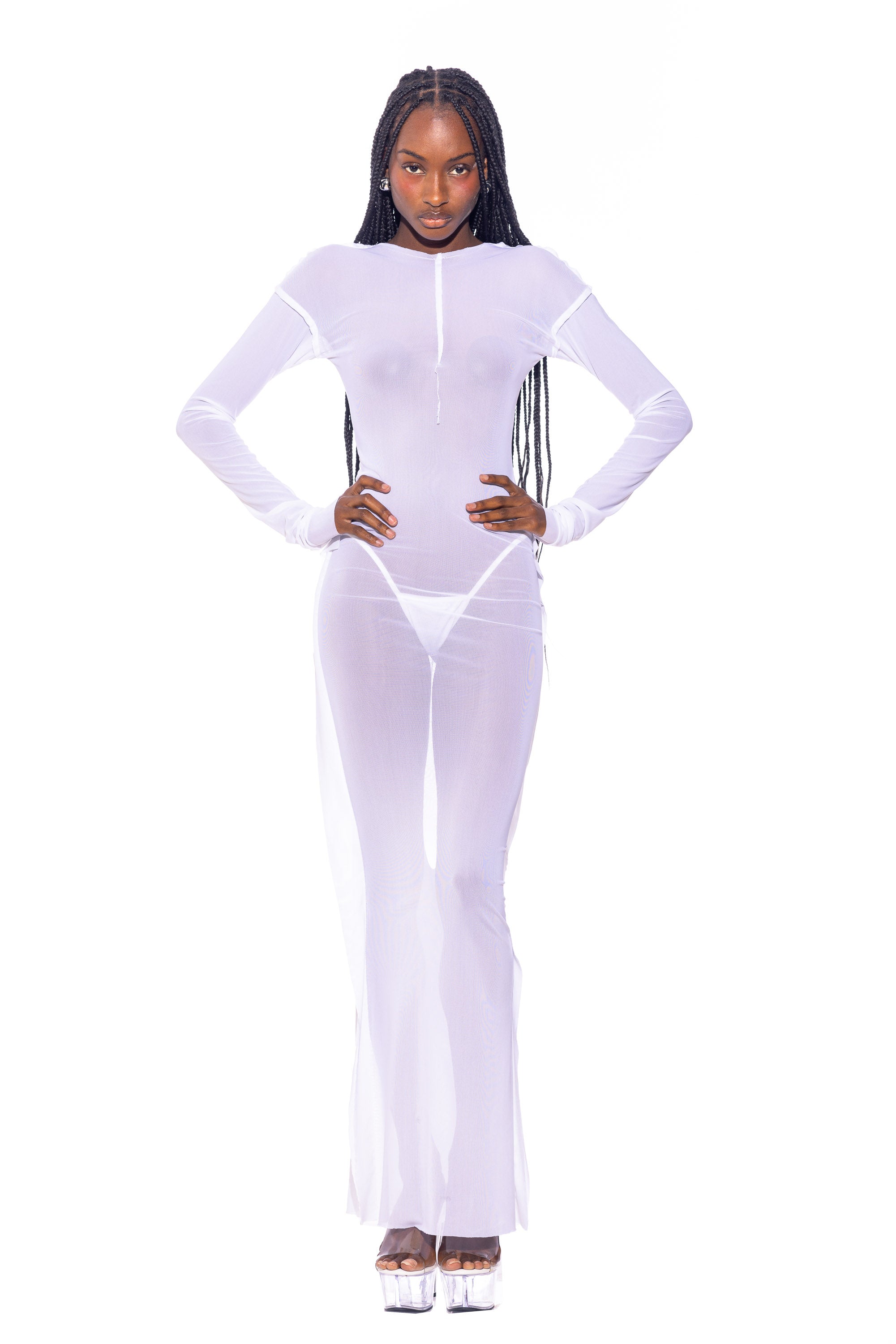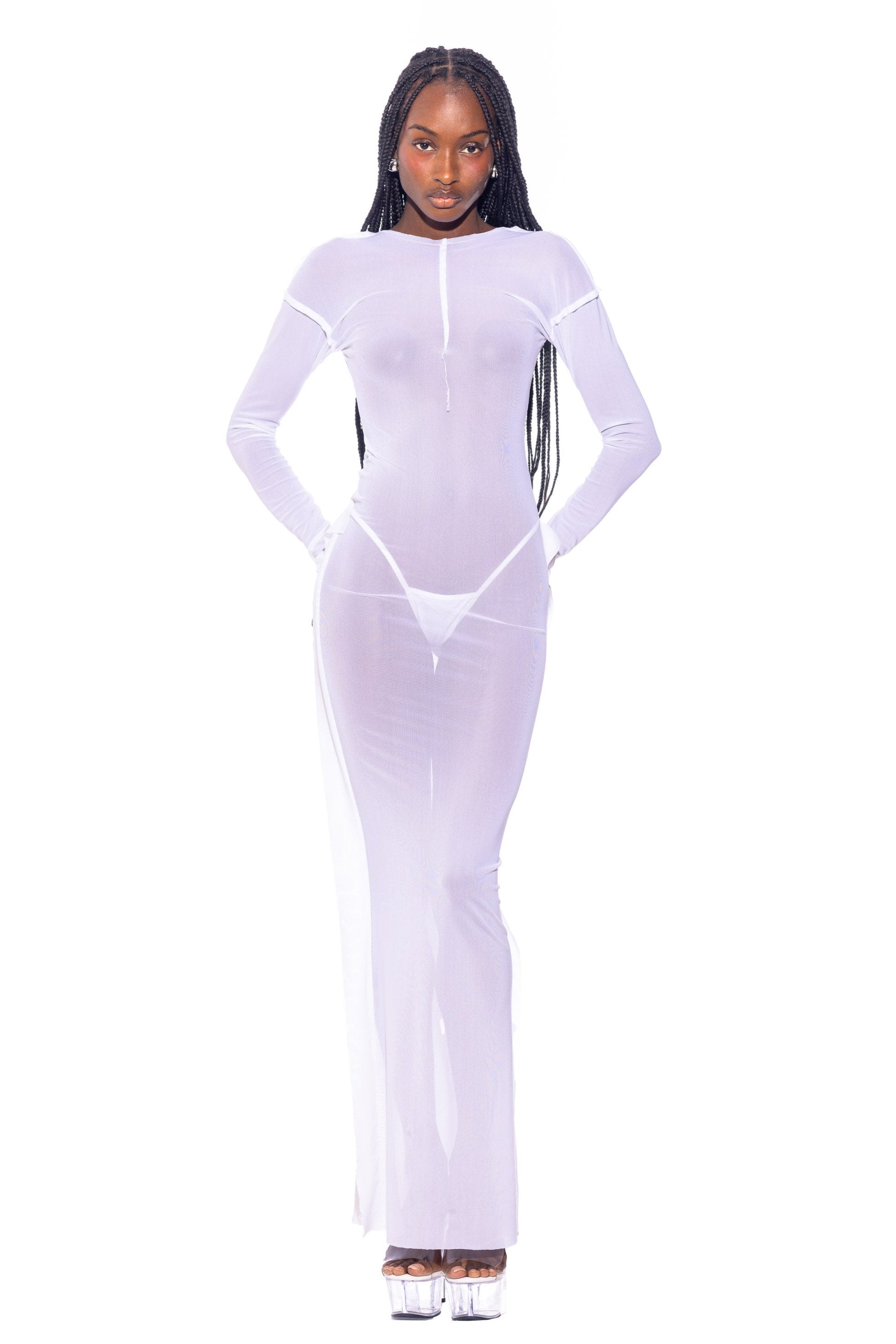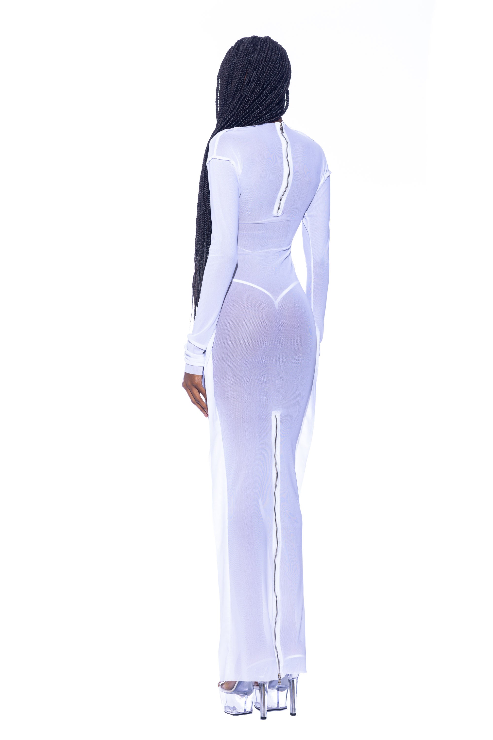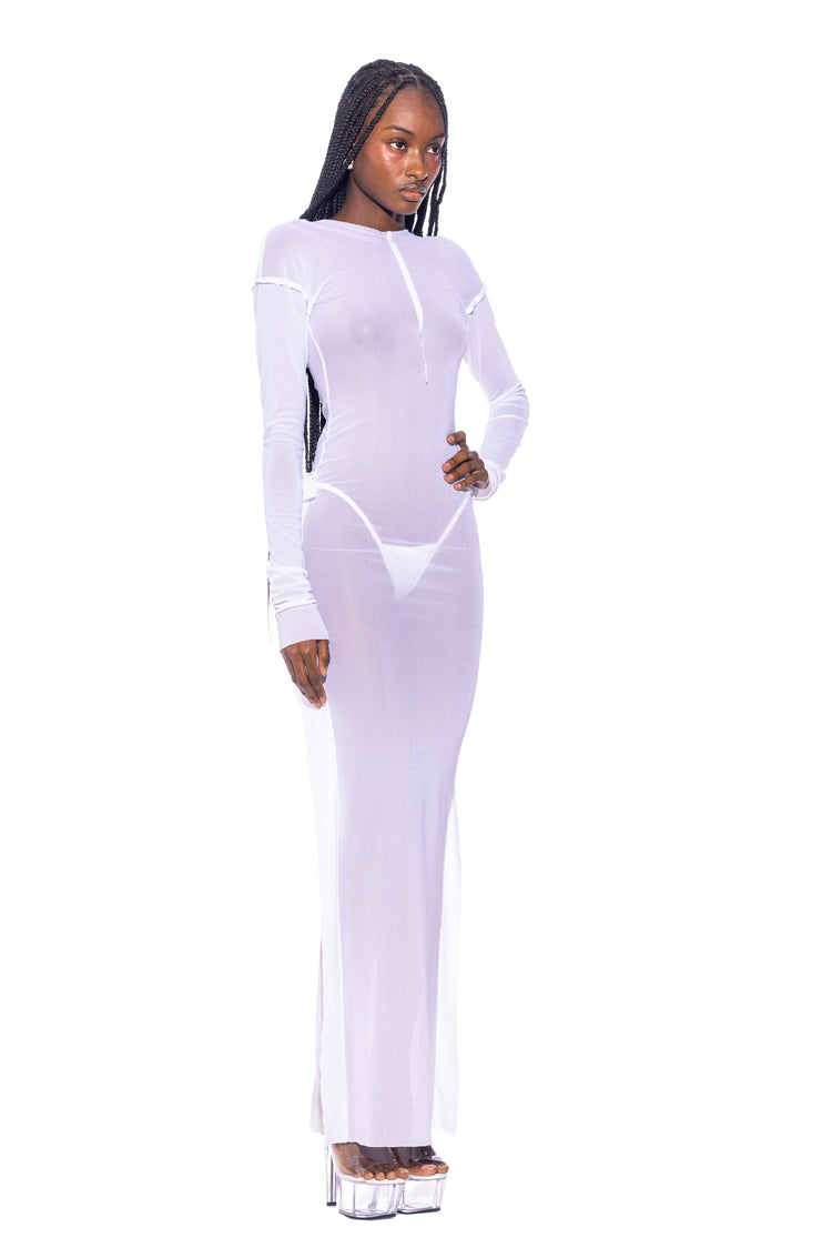 OPEN SEAM MAXI DRESS IN WHITE ECO MESH