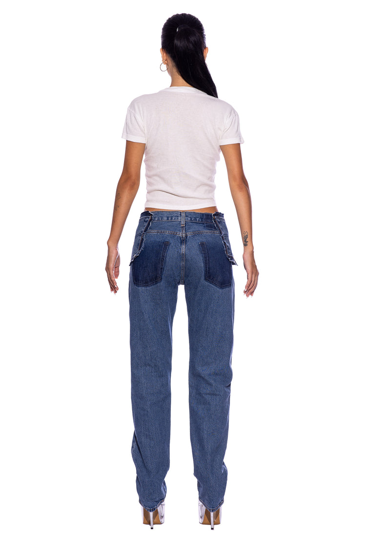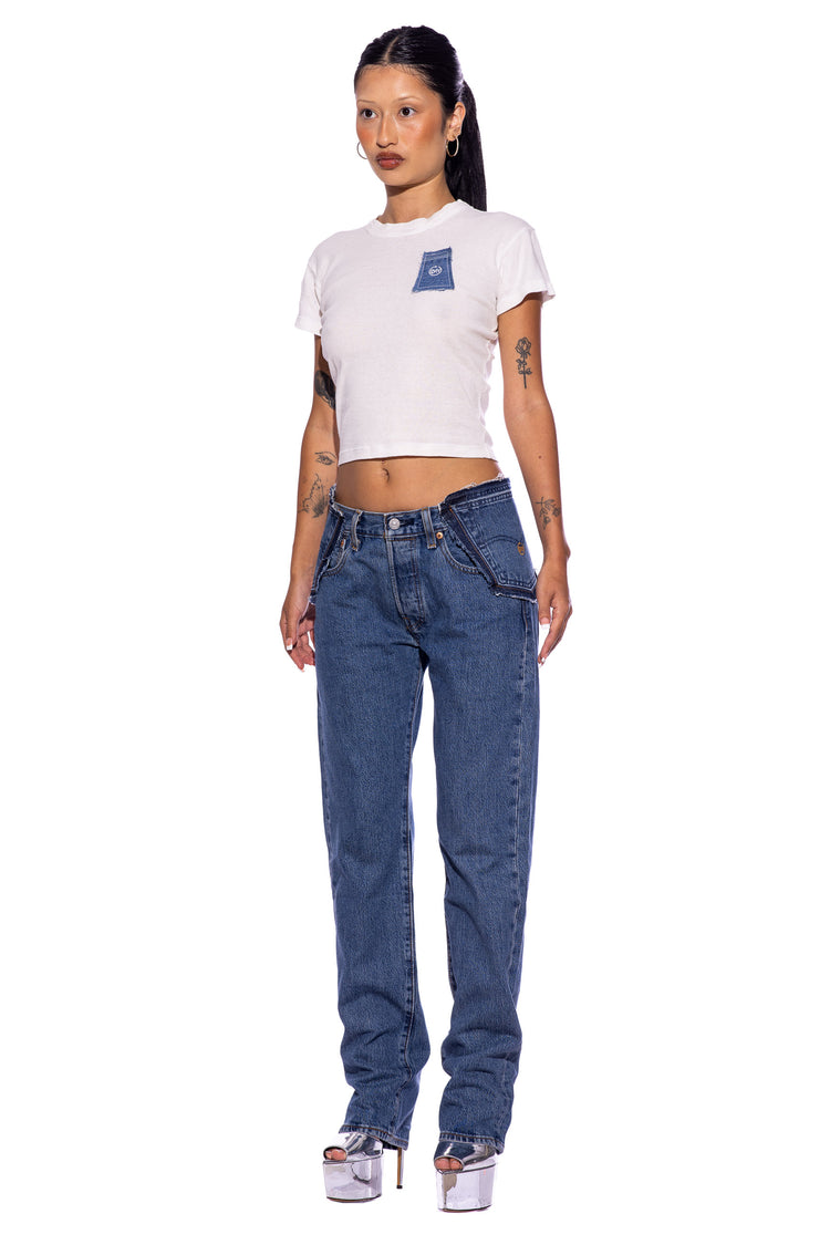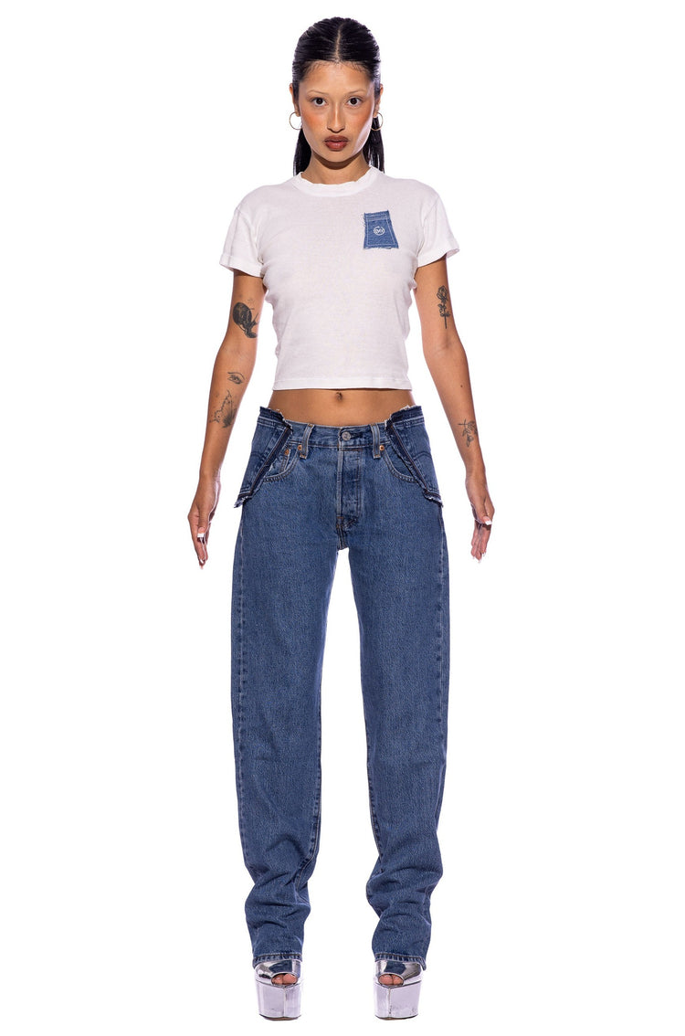 BLUE DENIM SCRAP MINI TEE IN WHITE