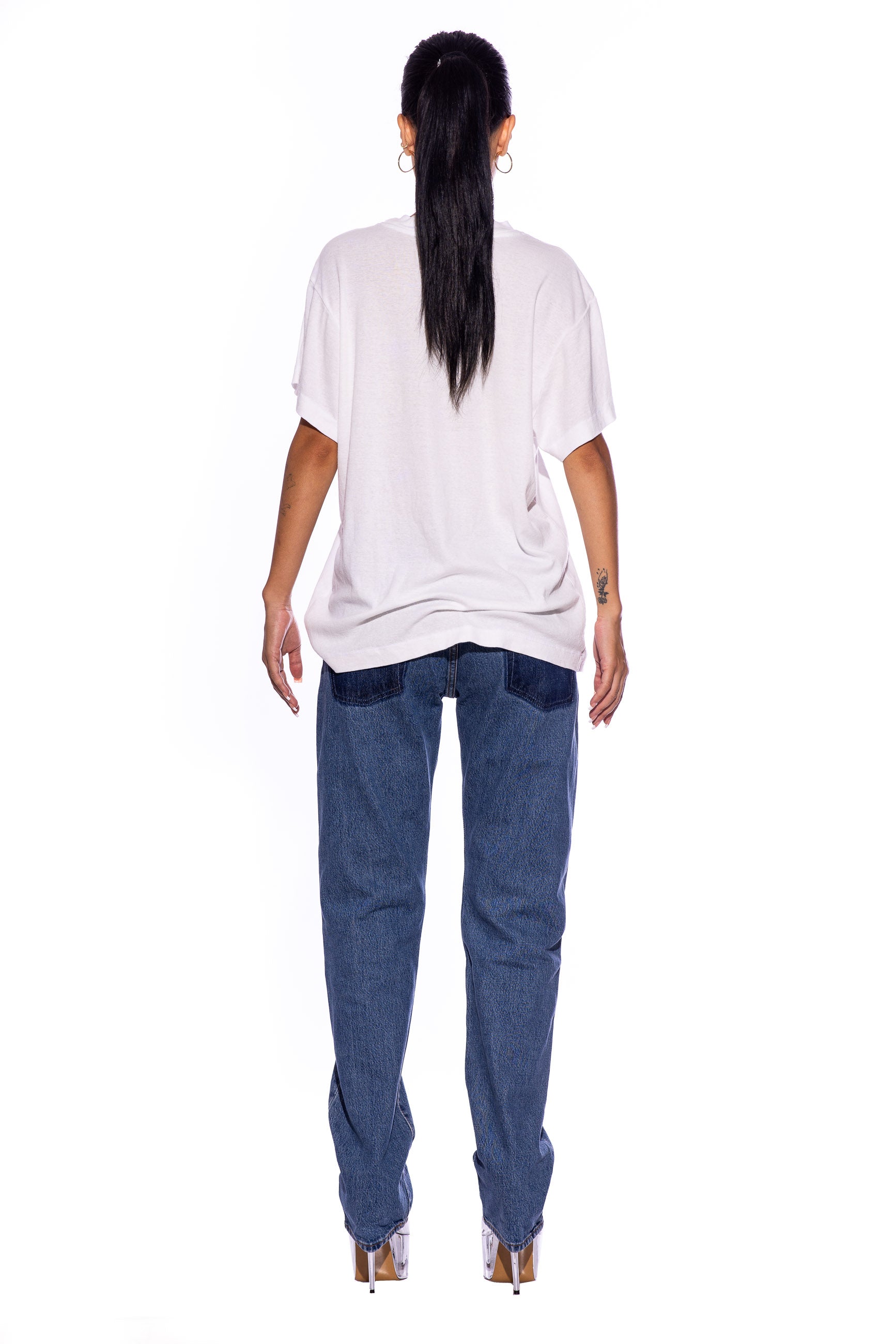 BLUE DENIM SCRAP LOOSE TEE IN WHITE
