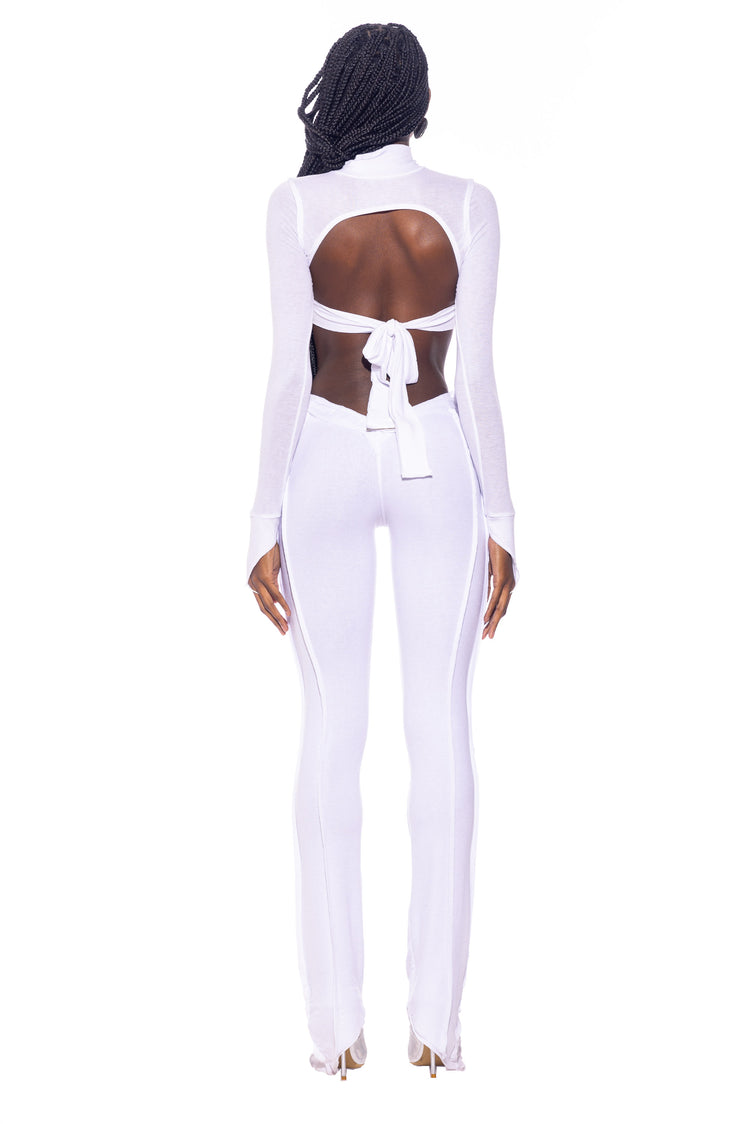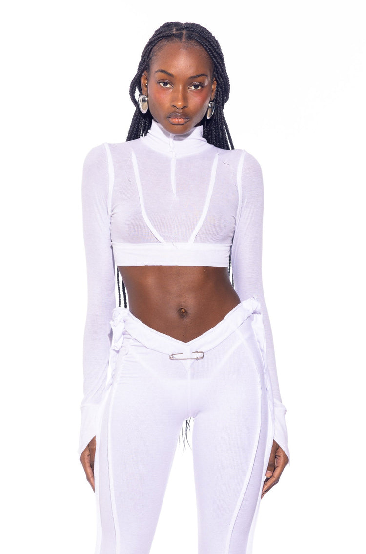 OPEN SEAM HIGH NECK CROP TOP IN WHITE RIB