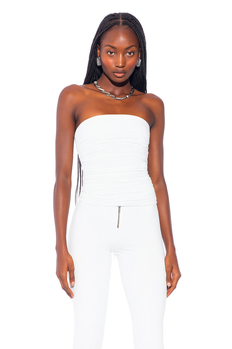 SHIRRED TUBE TOP IN WHITE ECO MESH