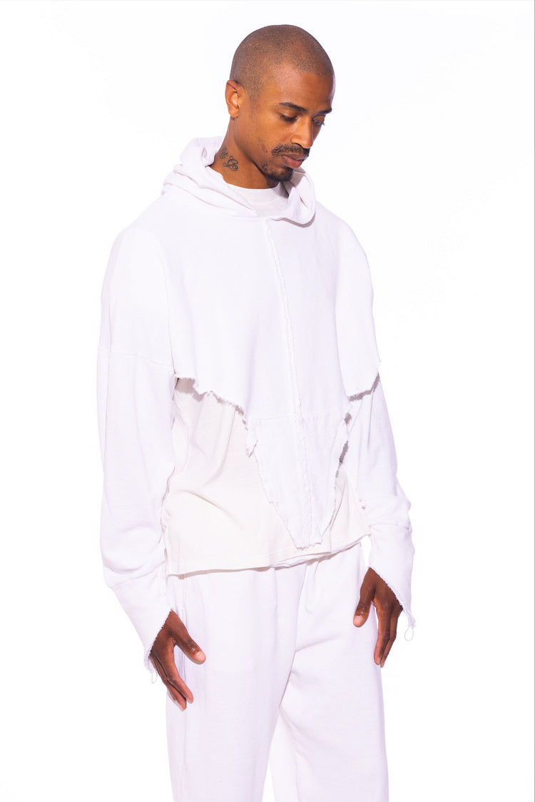 Victorian cuffs, finger elastic, hood and removable shoulder pads.
