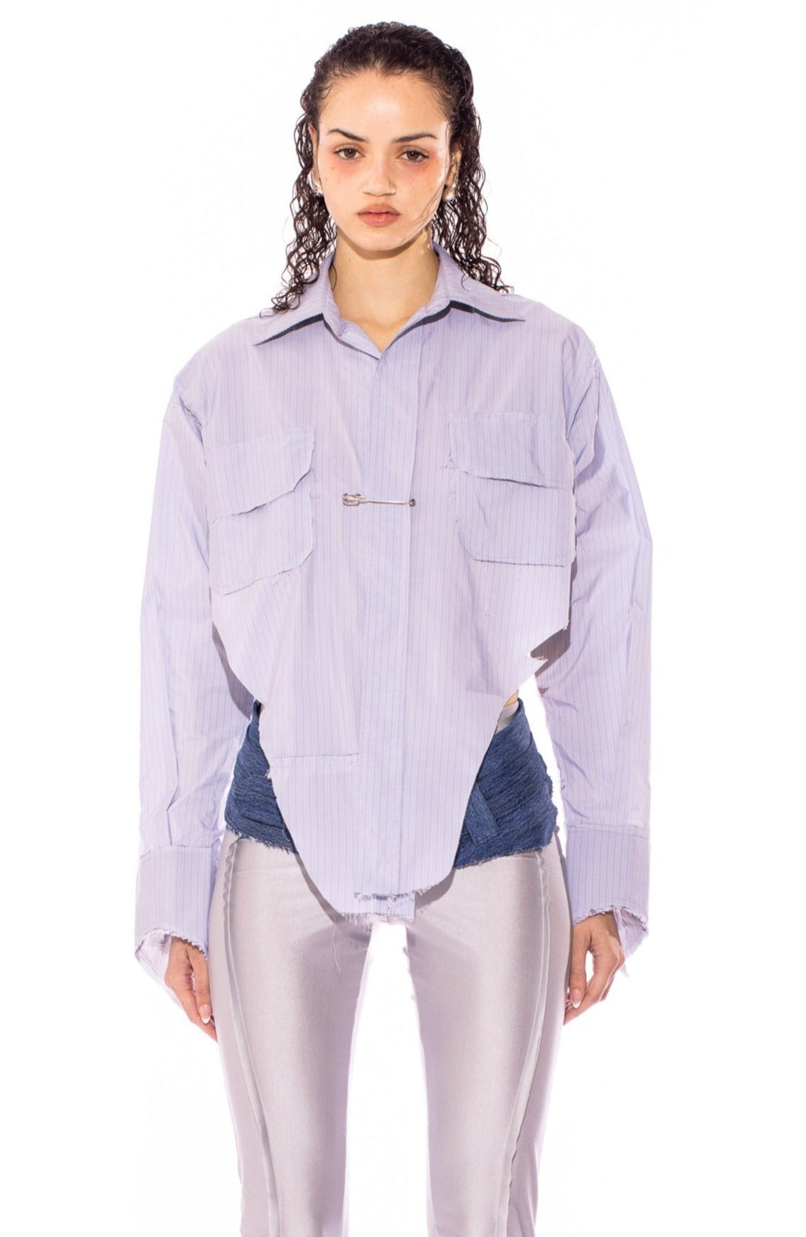 V CUT SAFETY PIN BLOUSE IN BLUE PIN