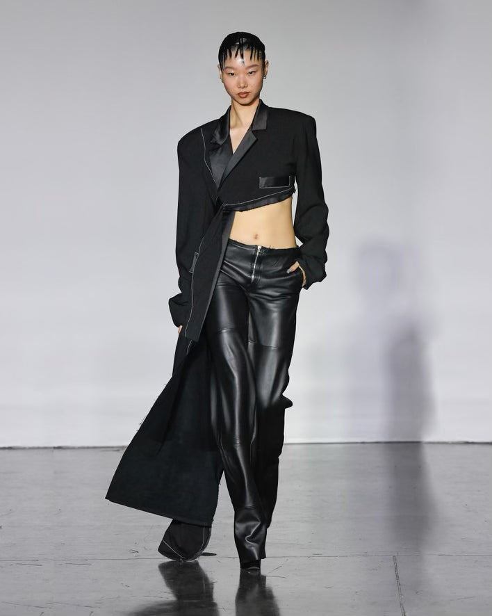 Up-cycled from Revolve dead stock leather trousers