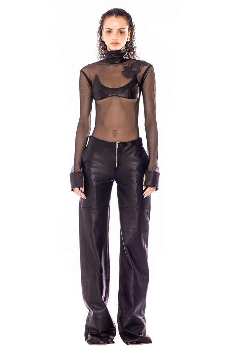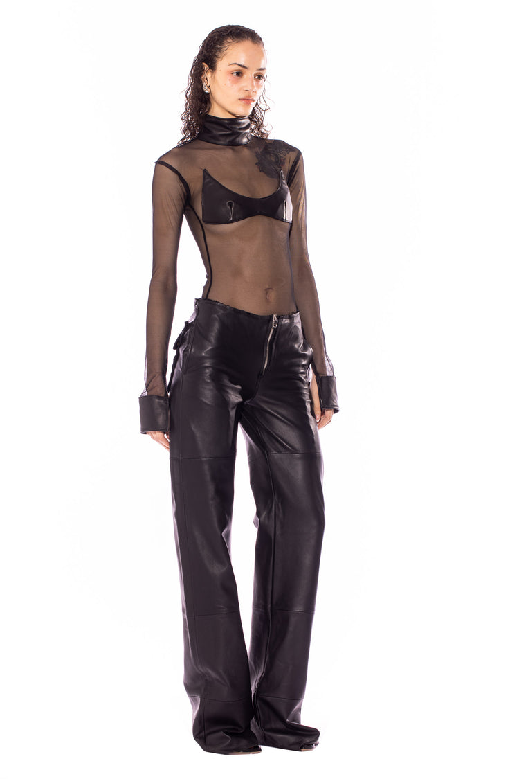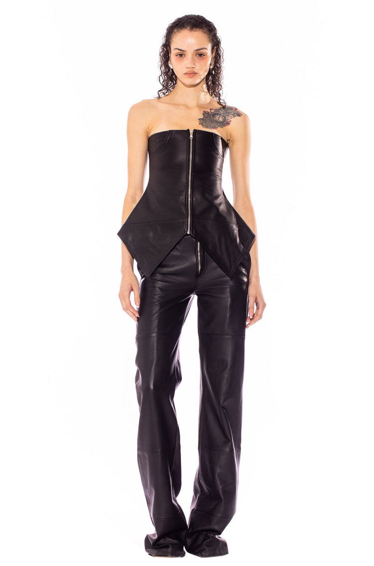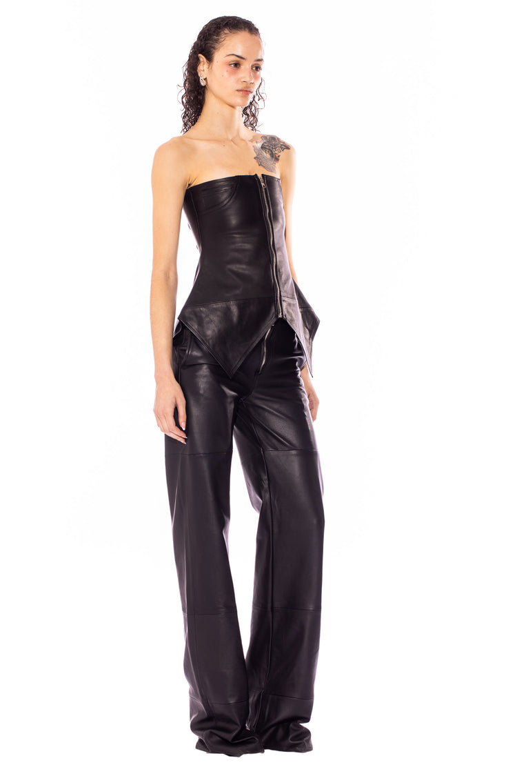 RAW WAIST TROUSER IN BLACK LEATHER
