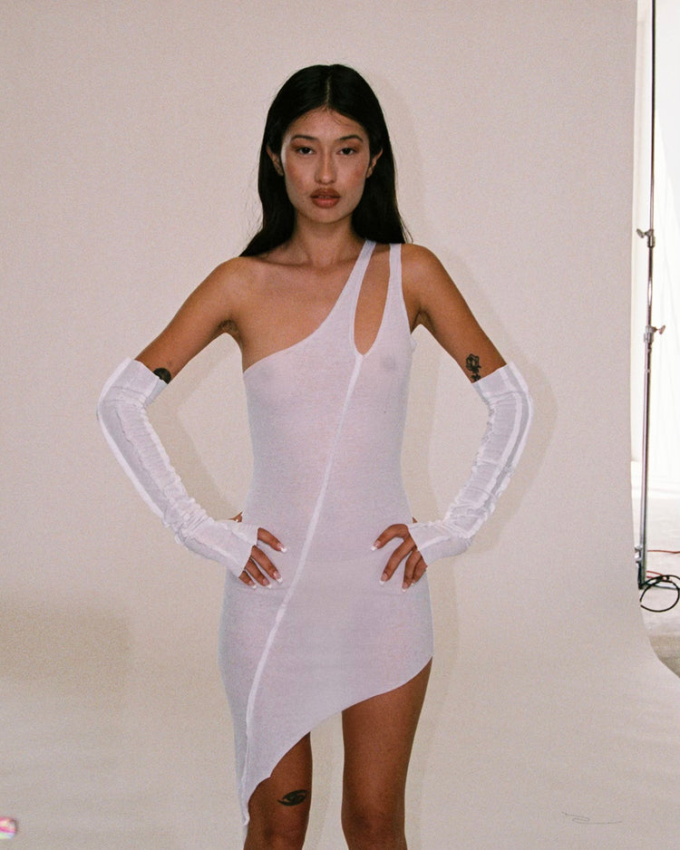 ASYMMETRIC ONE SHOULDER TANK DRESS IN WHITE RIB