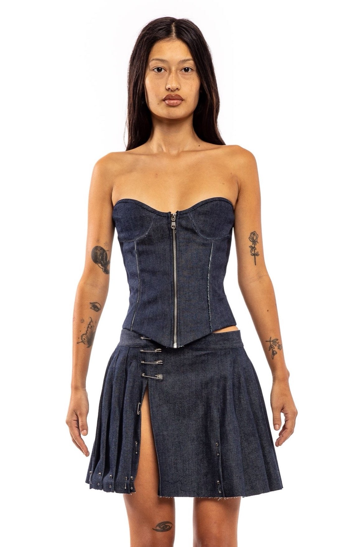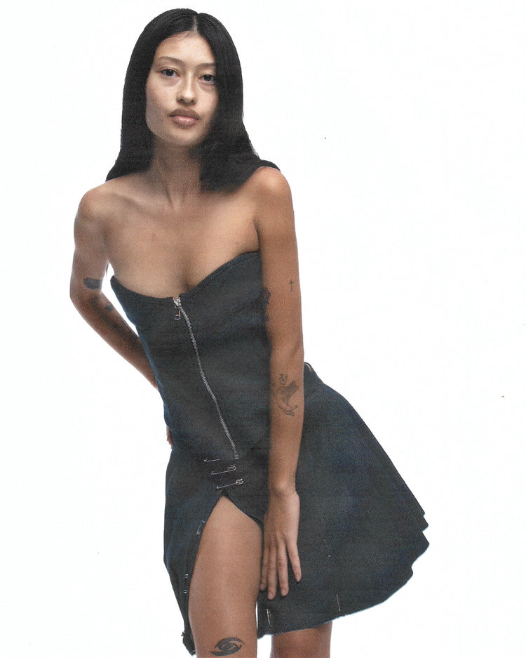 OPEN SEAM CORSET IN RAW DENIM