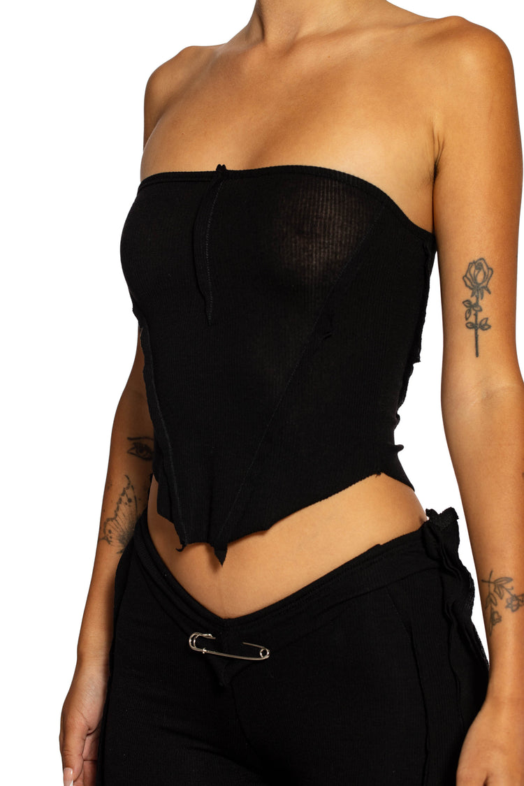 Pair it with our Open Seam Arm Warmers and any of our bottoms in black rib.