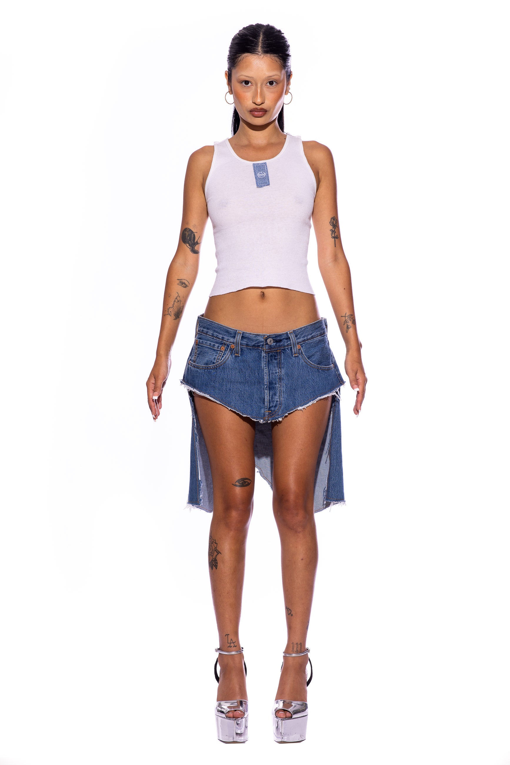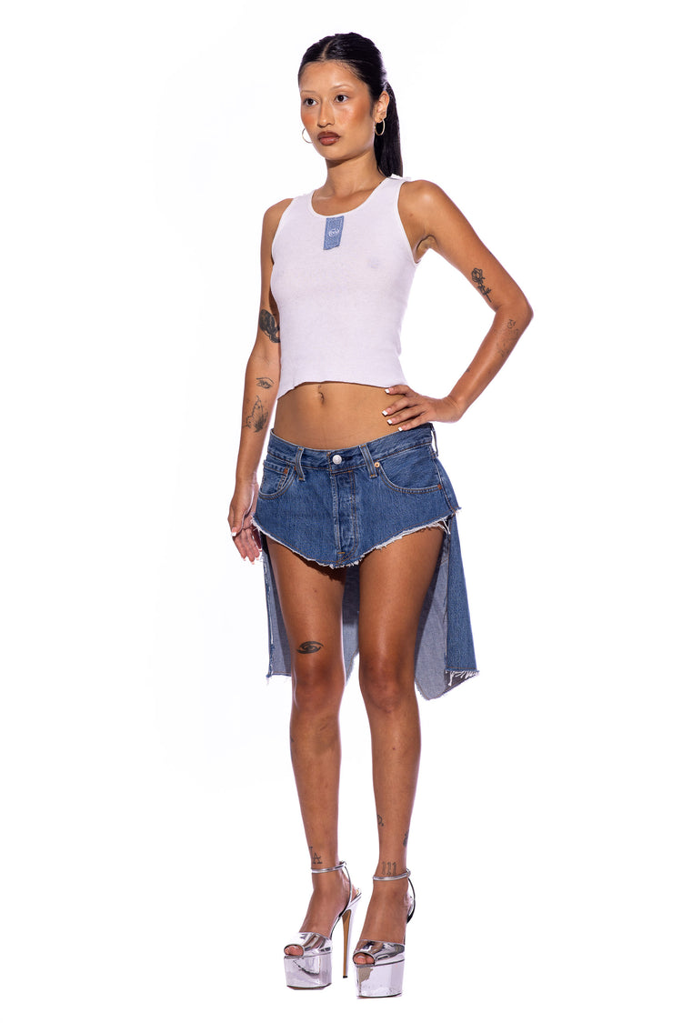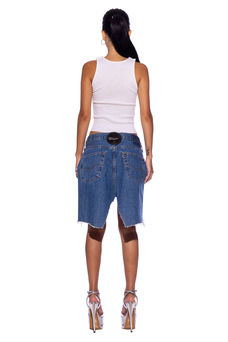 HI LOW SKIRT IN VINTAGE BLUE DENIM