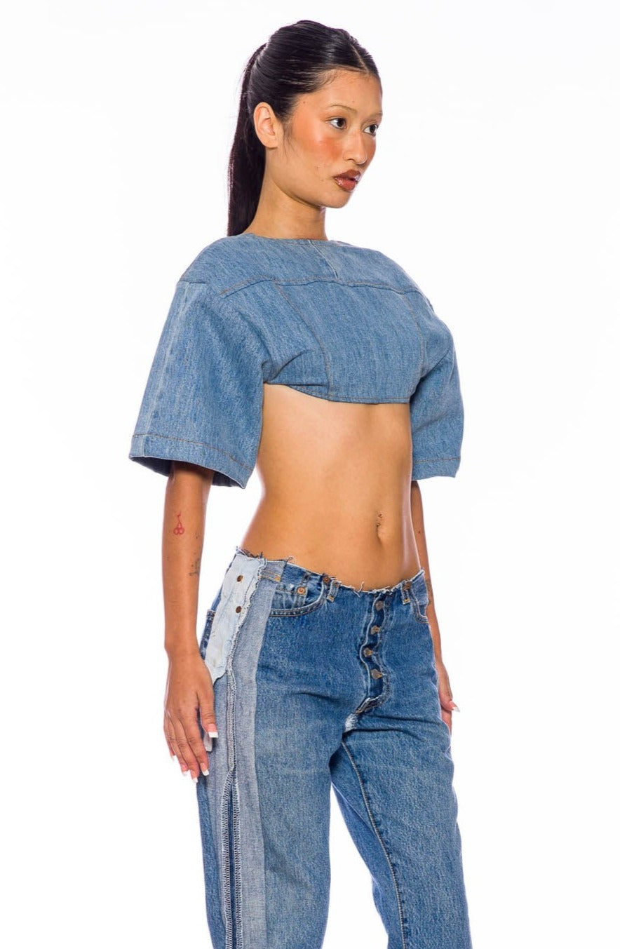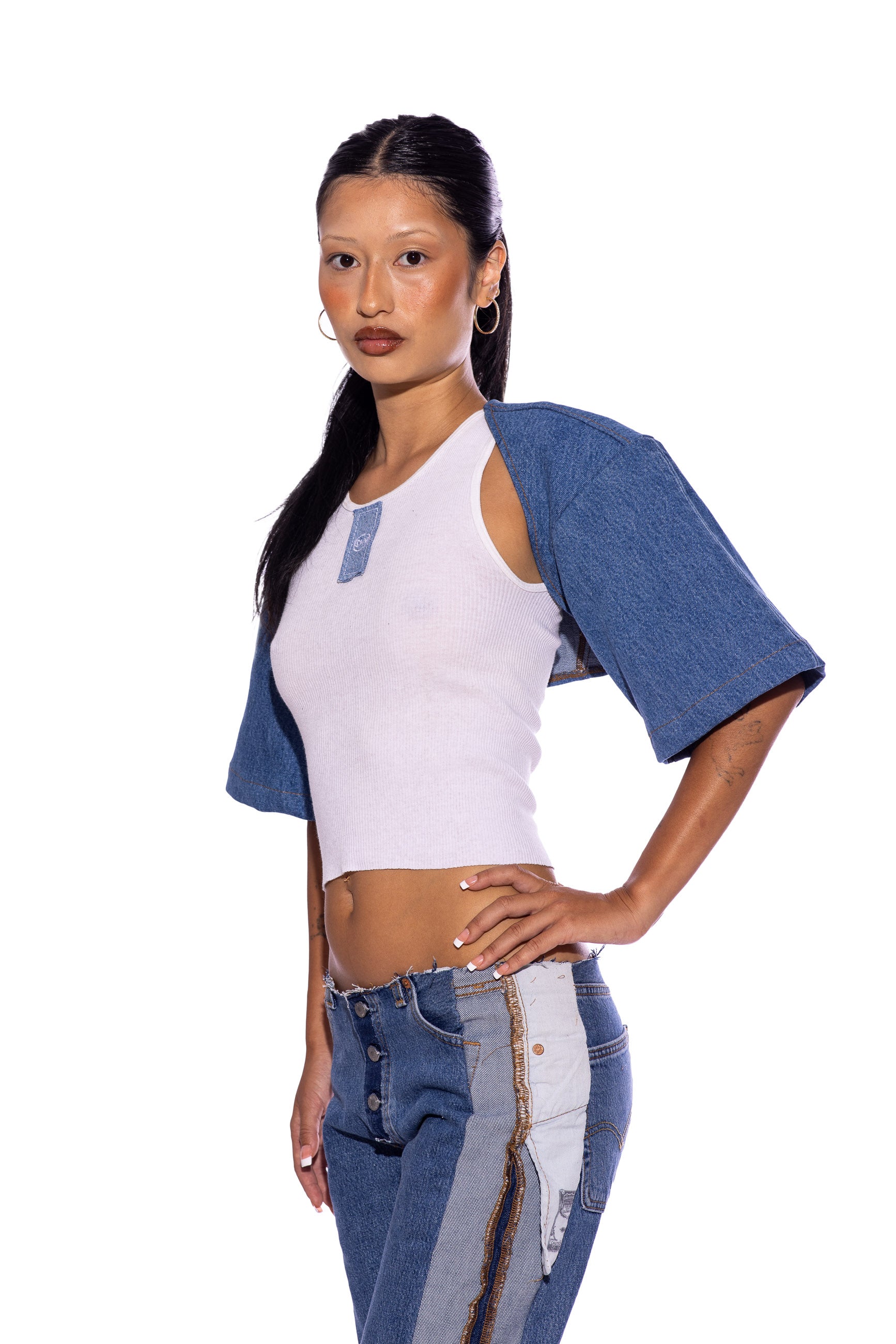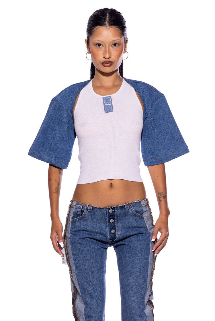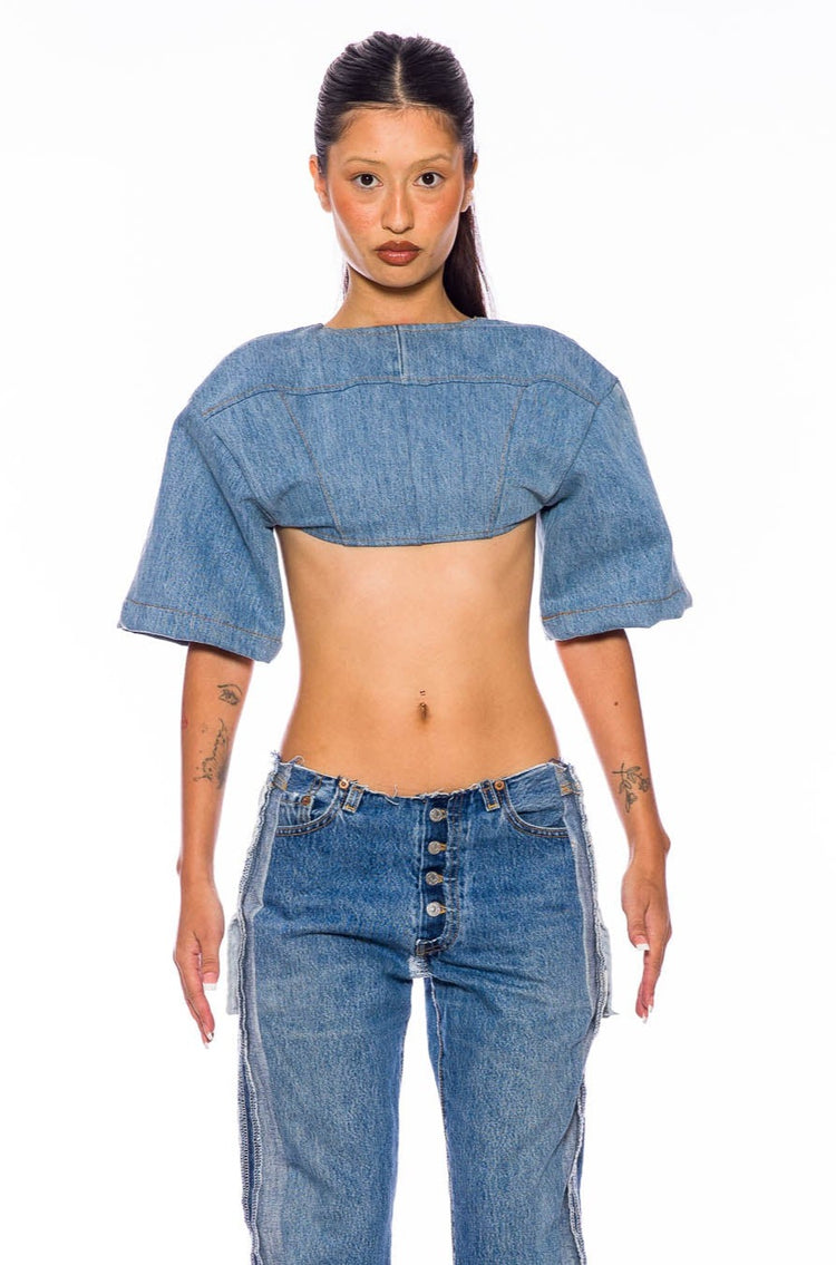 SHORT SLEEVE BOLERO IN VINTAGE DENIM