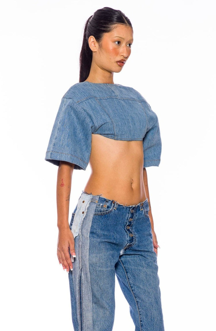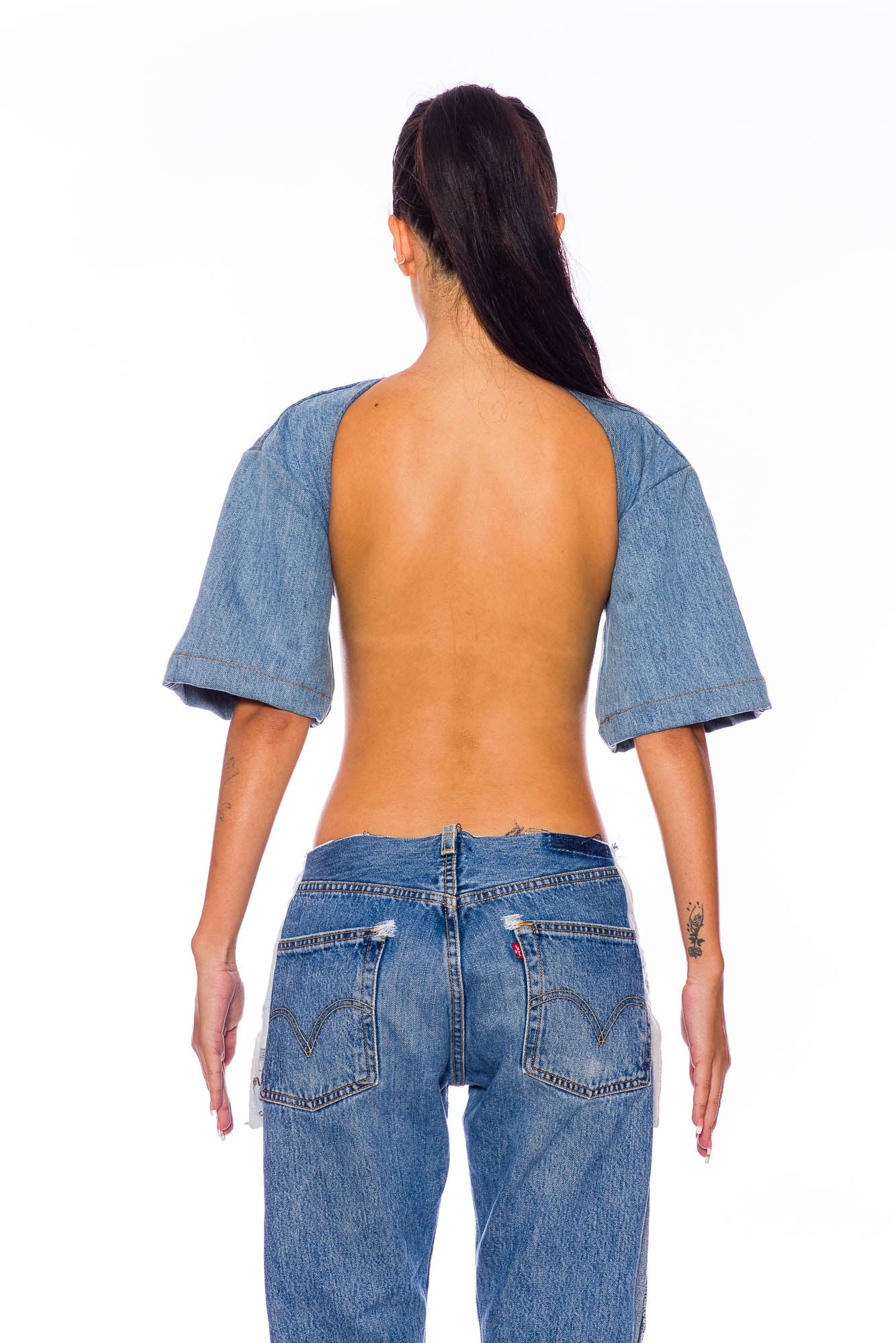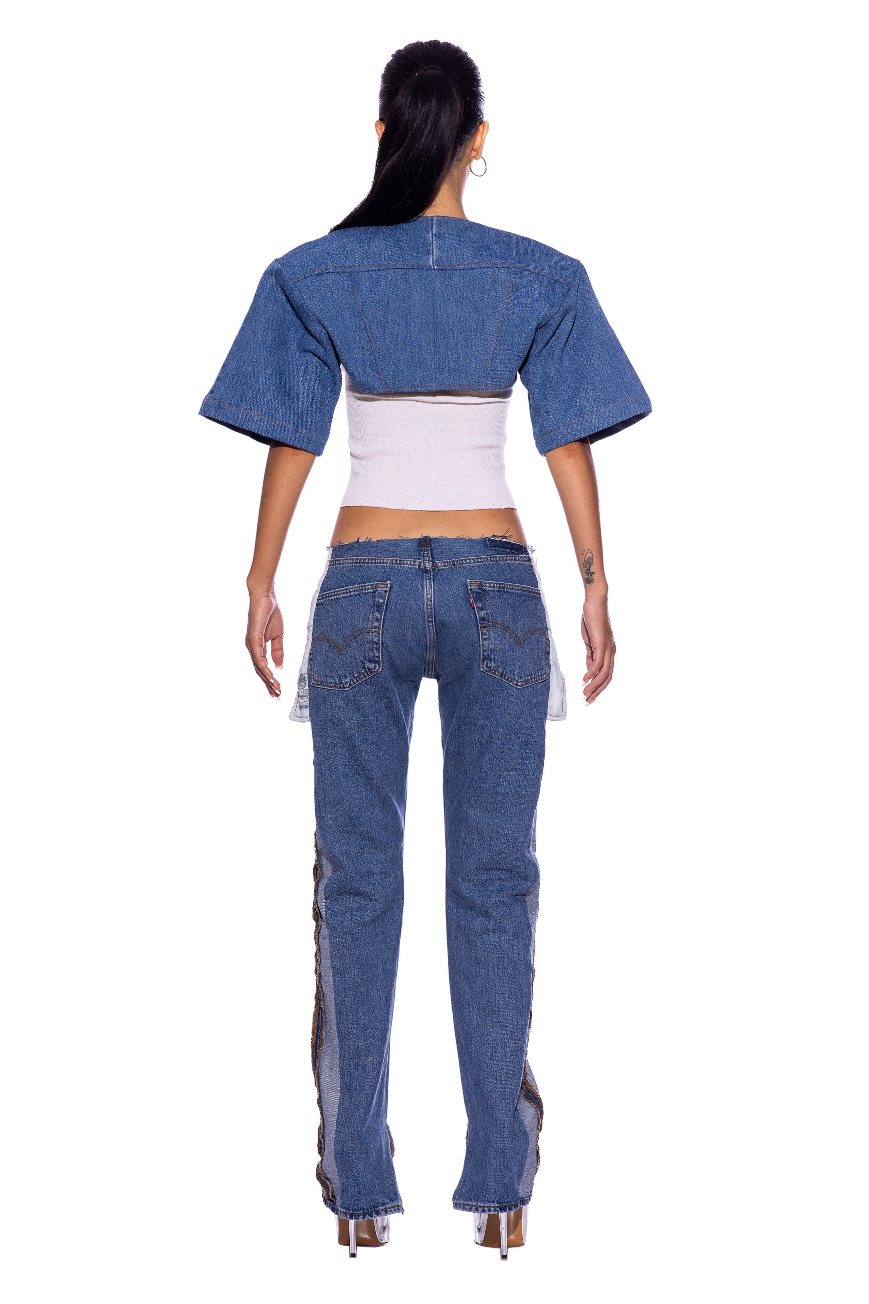 SHORT SLEEVE BOLERO IN VINTAGE DENIM